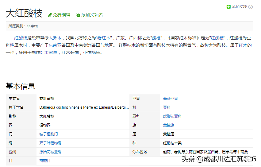 属国标红木“红酸枝木类”中的一种,也是一种与大红酸枝及其相似的木种,其原料价格本高于东非黑黄檀,但因其出材率高又加工容易,所以综合价格算下来就低于东非黑黄檀了。