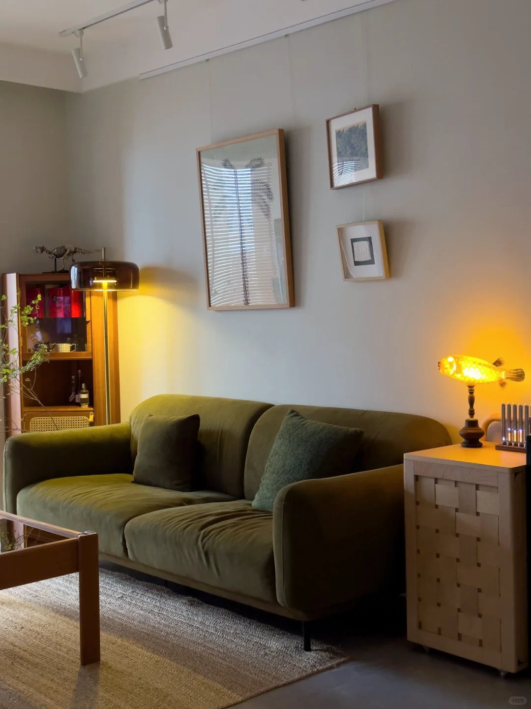 一个绿色的沙发,使得整体空间更加清新,带有一丝温度感。