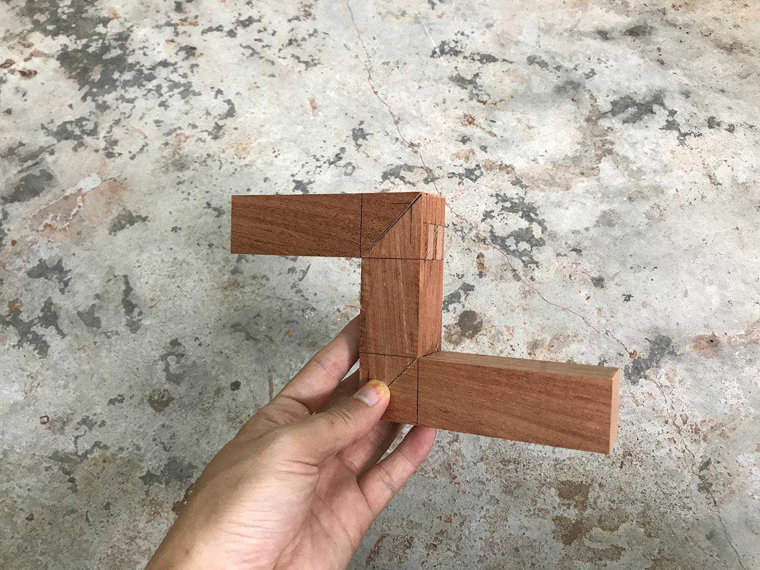 粽角榫因其外形仿佛粽子角而得名。三根料相交的一个结构,任何一个角度都看不到料横截面。