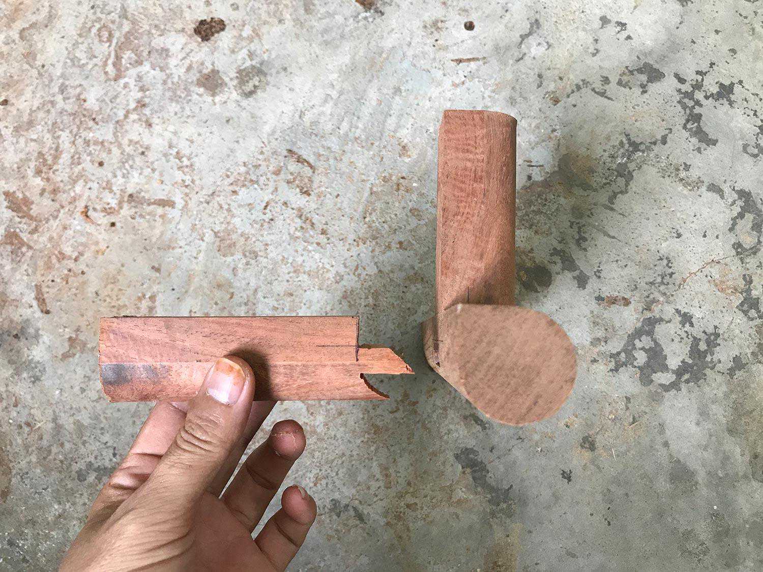 制作烟袋锅榫可以理解为正方形的方材直肩丁字接合,然后倒圆而成。