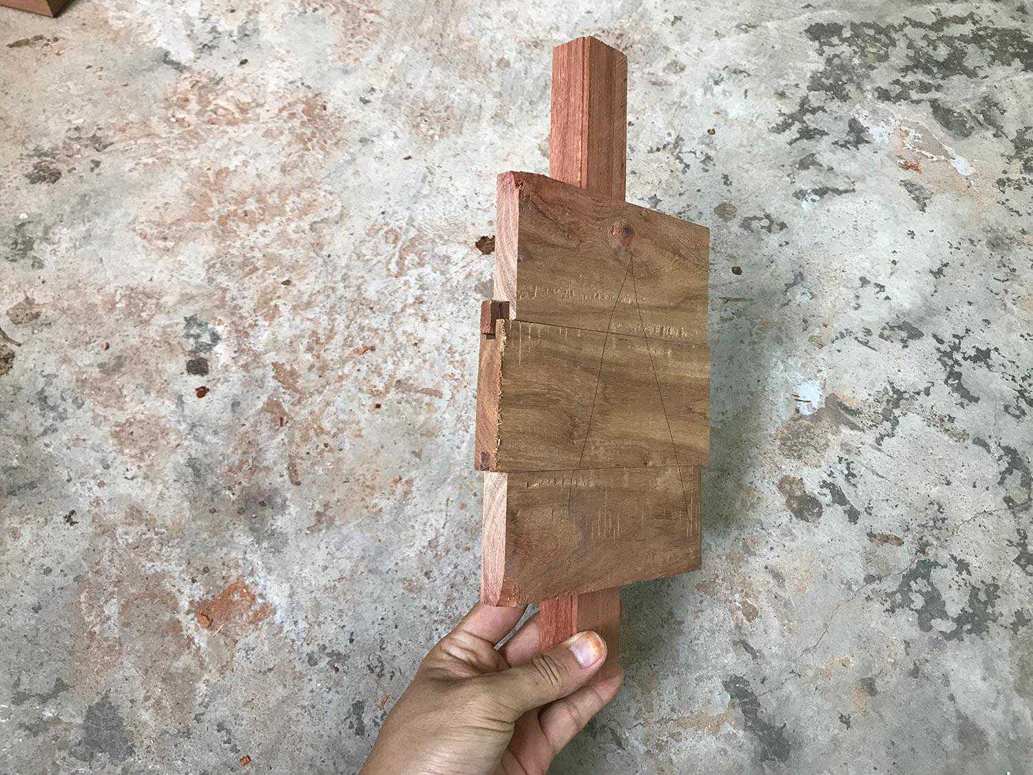 这种方法是平板角接合的最讲究方法,从外表看不到榫头,但不如明燕尾榫牢固。