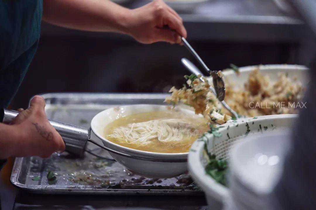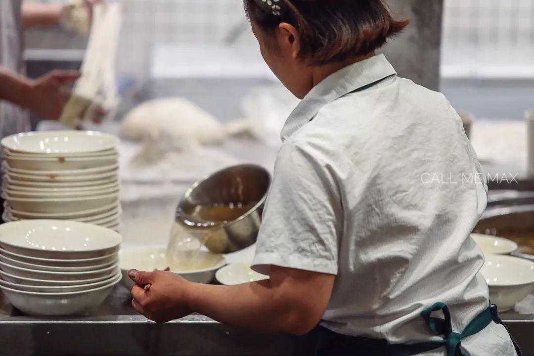 当然,灵魂是虚缈的东西,这些汤水喝下去也暖人心胃,但带来的充足感却只能在精神上留停片刻,面才是真正实体,这店开了三十年,分店开了九间,面条的宽度也是九种,从最宽的皮带面到最细的龙须面,人们最常点的,是韭叶和二细。面是手抻的,和面时动用全身武力,抻面时只需轻舒猿臂,反复对折着就把面团抻成无数条同弧曲线,再瀑布般甩进锅里,面在沸水里游弋荡漾的状态很能让人开心得出了神。