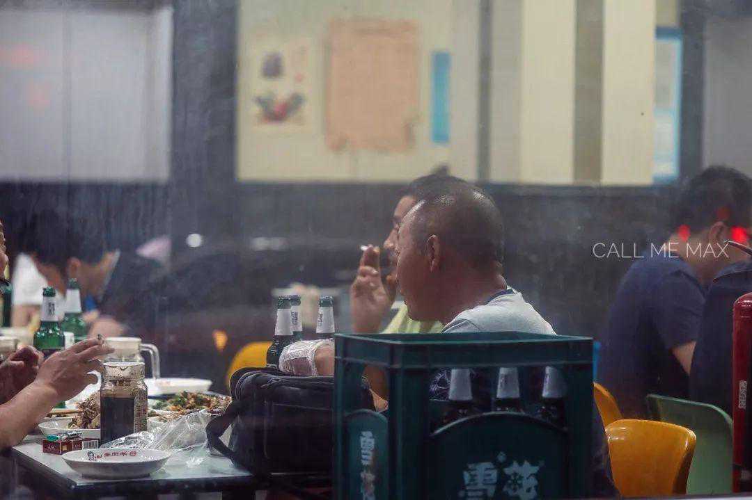也有孤身的中年酒客,衣着朴素,才在路灯下打六冲输钱,广场舞处铁子受阻,于是来此疗伤,喝两瓶老雪吃一碗抻面透透心中怒气,伴着周遭的大声喧哗自斟独饮,借着酒劲与自己的生活鏖战到底。对隔壁桌社会大哥所吹出的牛逼也是无法安之若素,对方穿着的黑底烫金纳粹鹰展翅横飞T恤也格外刺眼。不甘于只是默默地不忿和斜眼冷笑,于是便心怀百般怒气似的喃喃自语、单曲循环一般地低声恨骂“#,傻逼,谁TM还不是个社会人儿咋地”。