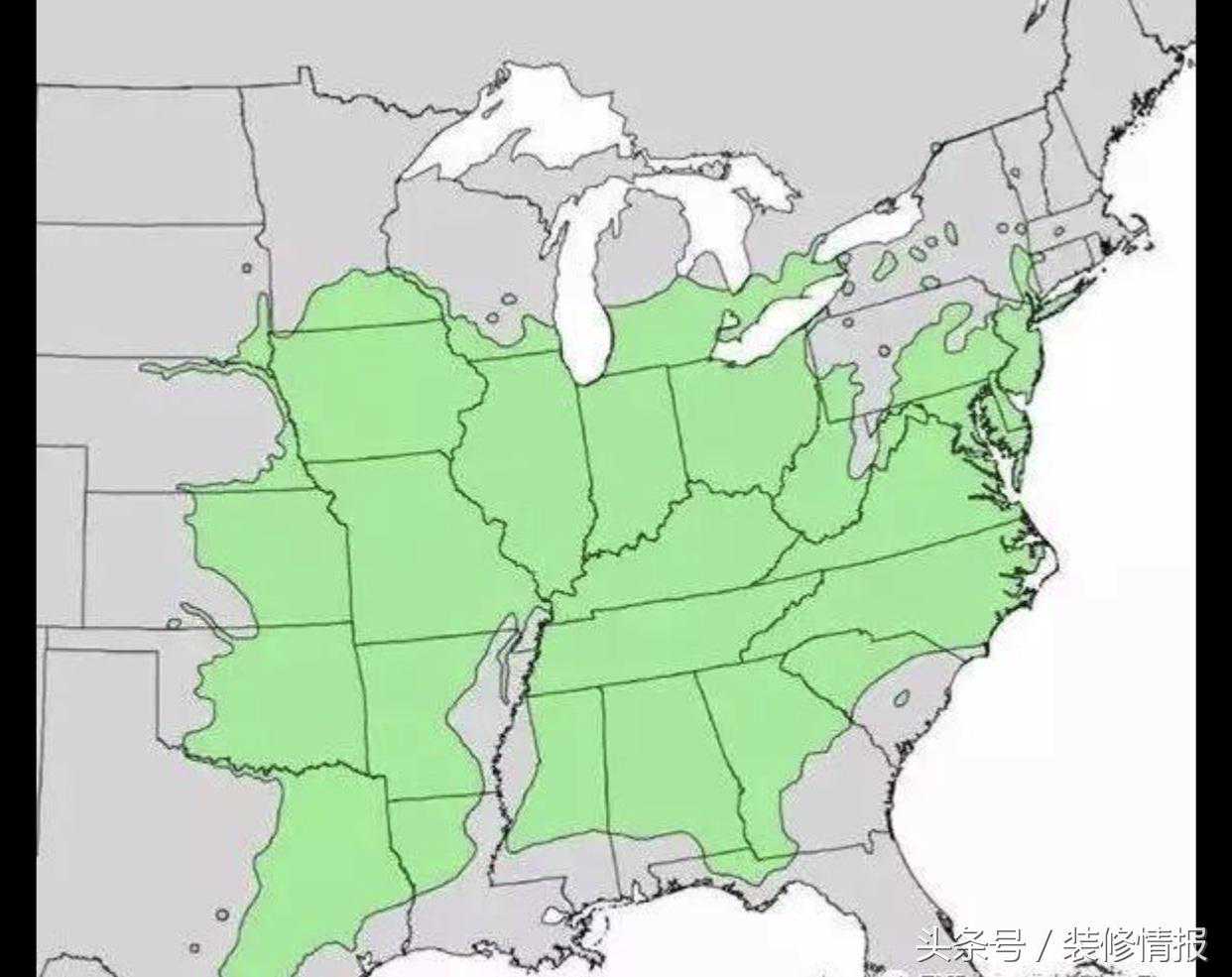 市面上的黑胡桃木家具都说原材料来自北美,这是有原因的。黑胡桃在美国的生长区域主要位于中东部地区,温带大陆性气候使得这处区域、四季分明,冬季寒冷而漫长,树木生长缓慢,生长周期长,树木晚材率高。材质坚硬,质地细密,尺寸稳定性好,胀缩率小,产品不易变形,树木的生长轮因冬季寒冷而停止生长,呈现出明显的年轮特征,于是产岀了最好的黑胡桃木,剖切后会显现岀美丽的花纹。