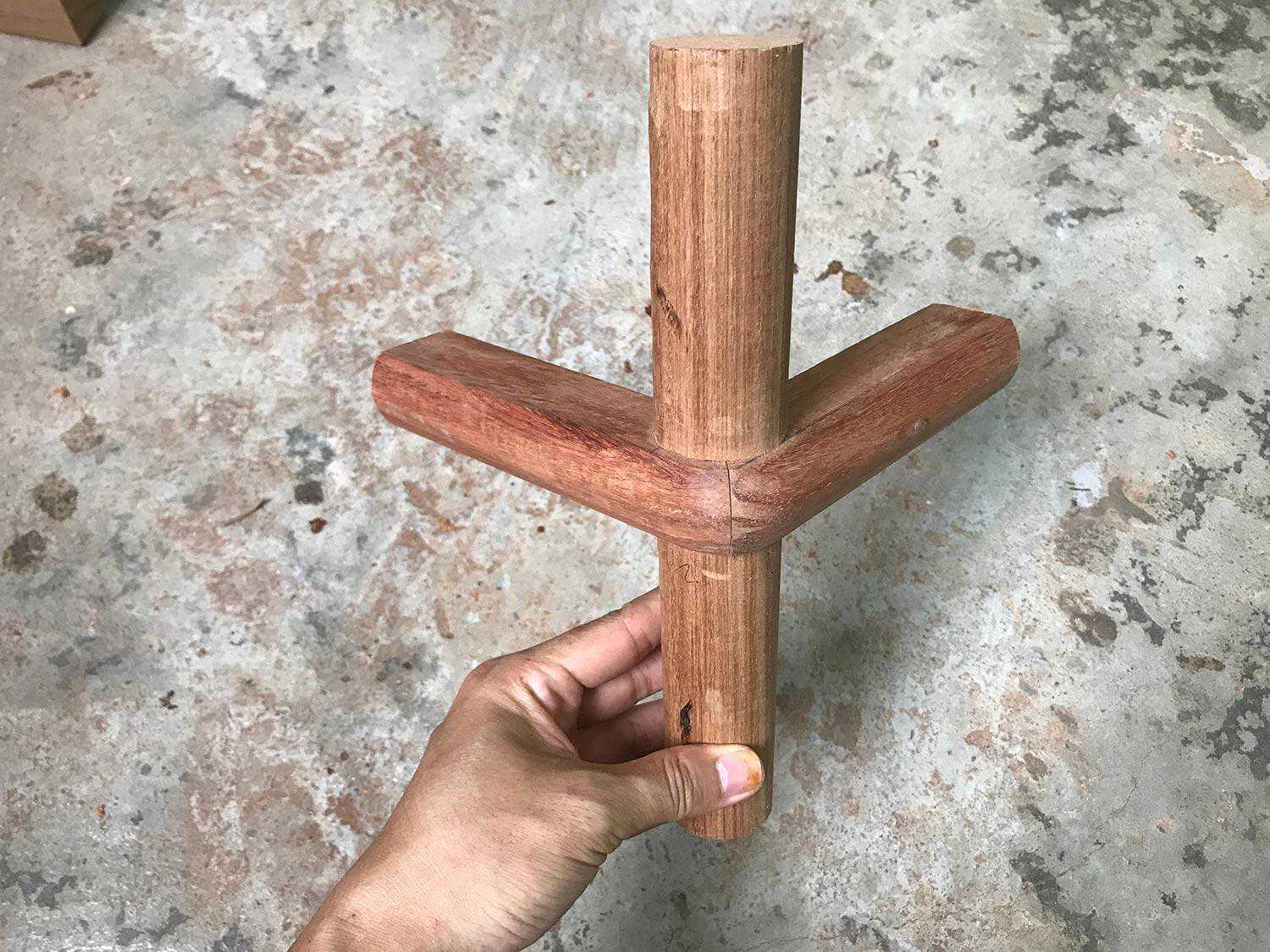 制作烟袋锅榫可以理解为正方形的方材直肩丁字接合,然后倒圆而成。