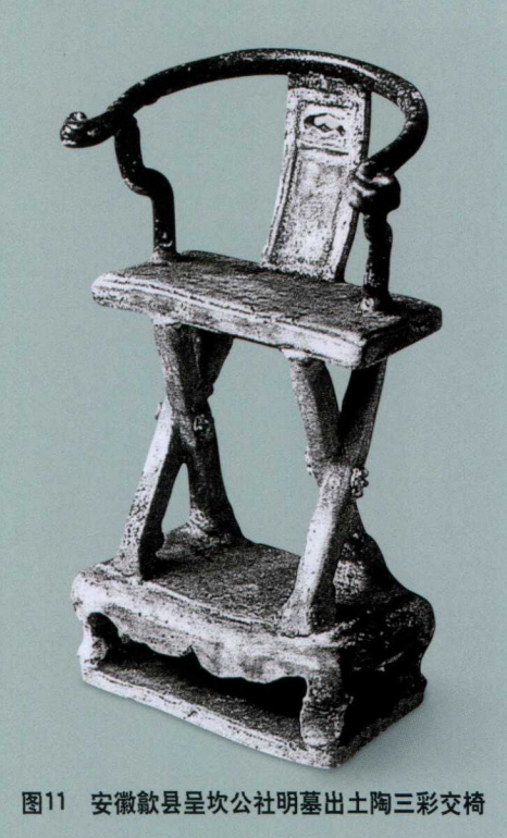 3.安徽歙县呈坎公社石川大队明墓出土一件陶三彩交椅,其靠背板上亦有海棠式开光作装饰(图11)。
