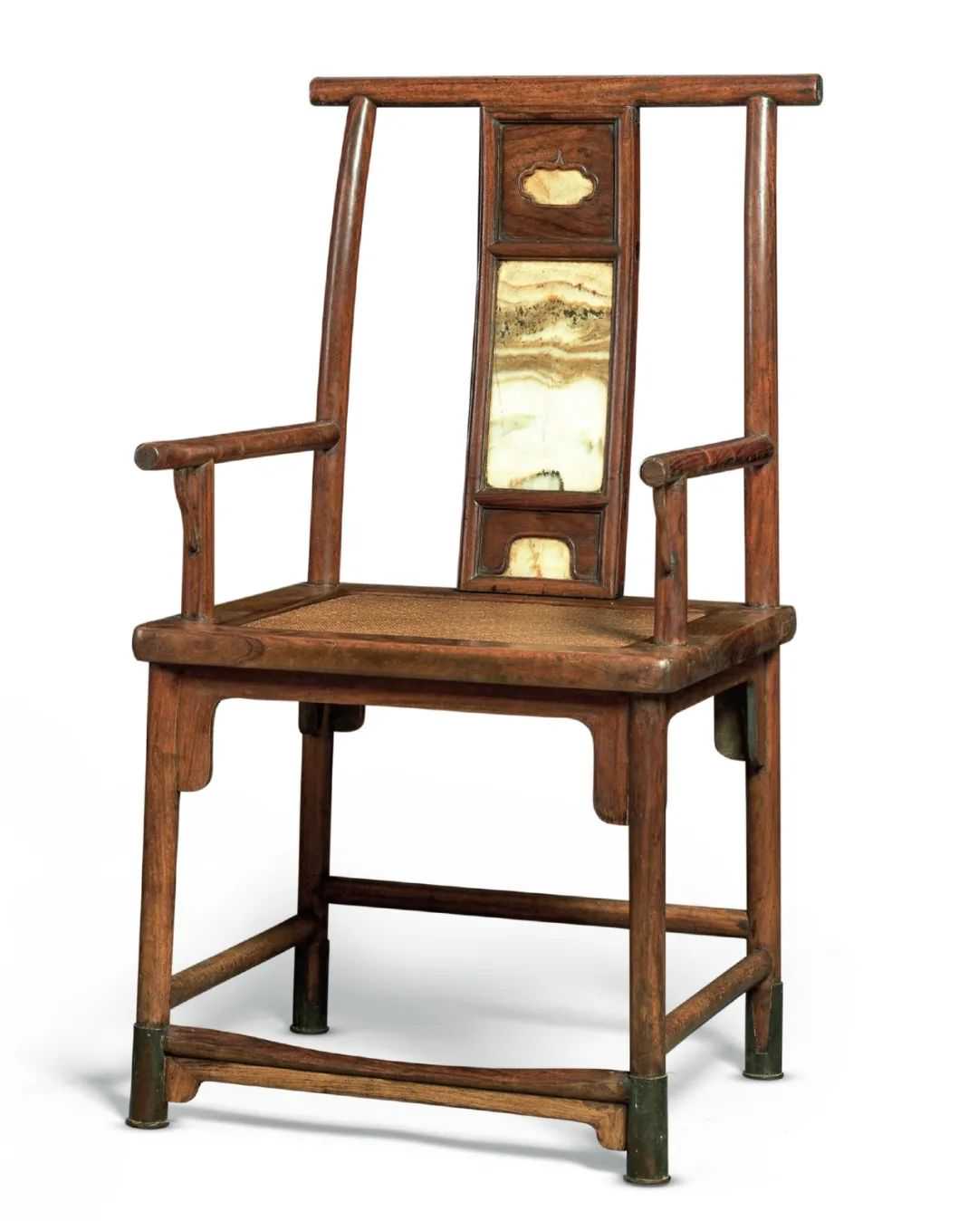 明黄花梨嵌大理石四出头官帽椅
