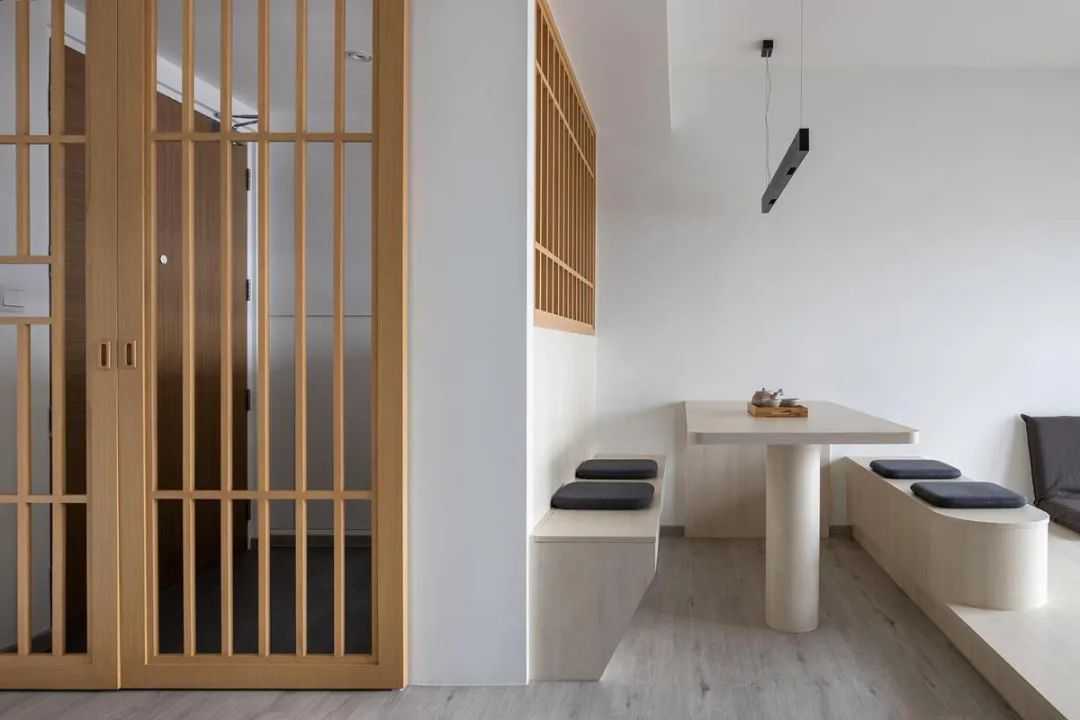 餐厅长凳也非常适合日式家居风格。在上图中,餐厅内置式座椅完全根据空间定制,采用了极简主义、简洁无繁杂的设计以配合整体风格。
