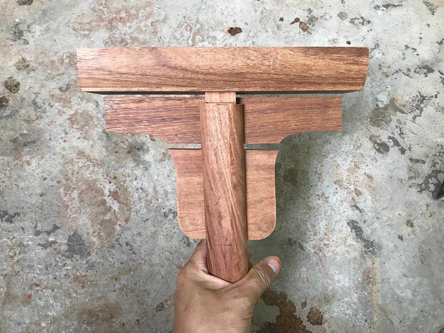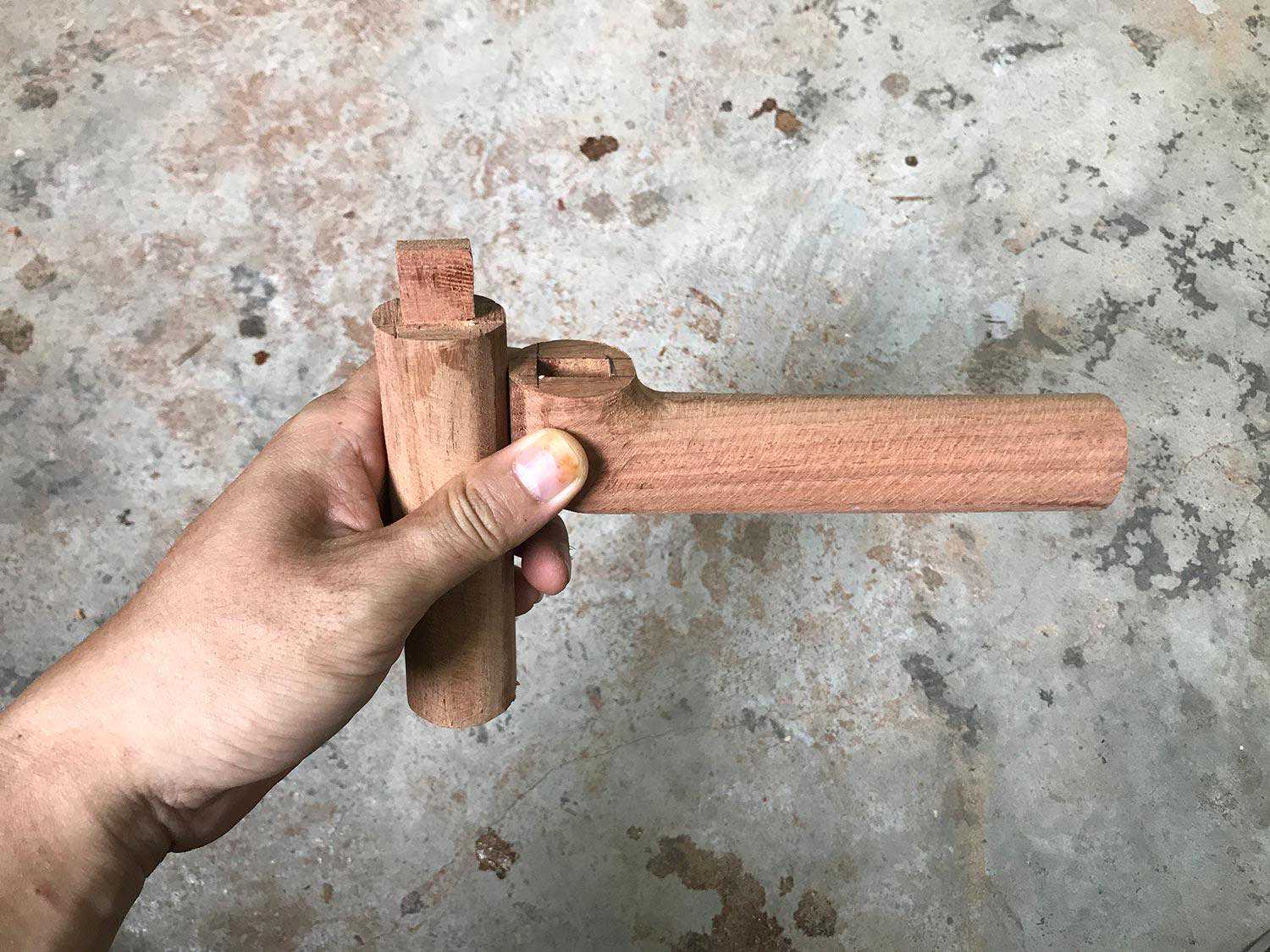 制作烟袋锅榫可以理解为正方形的方材直肩丁字接合,然后倒圆而成。