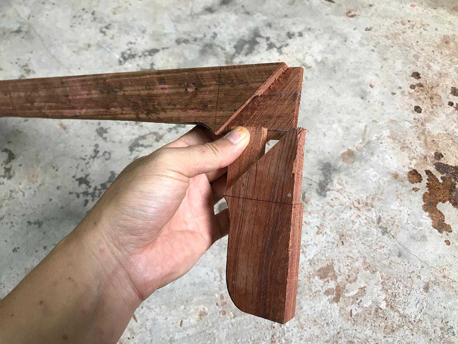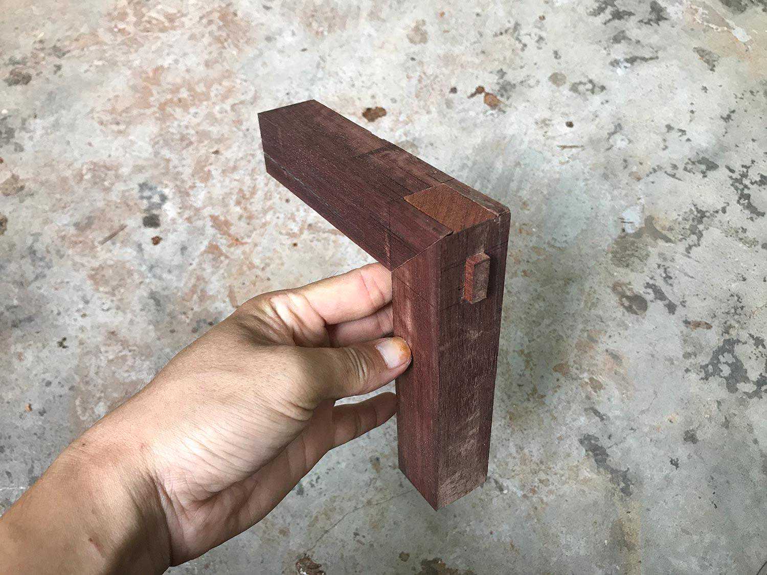 这种方法是平板角接合的最讲究方法,从外表看不到榫头,但不如明燕尾榫牢固。