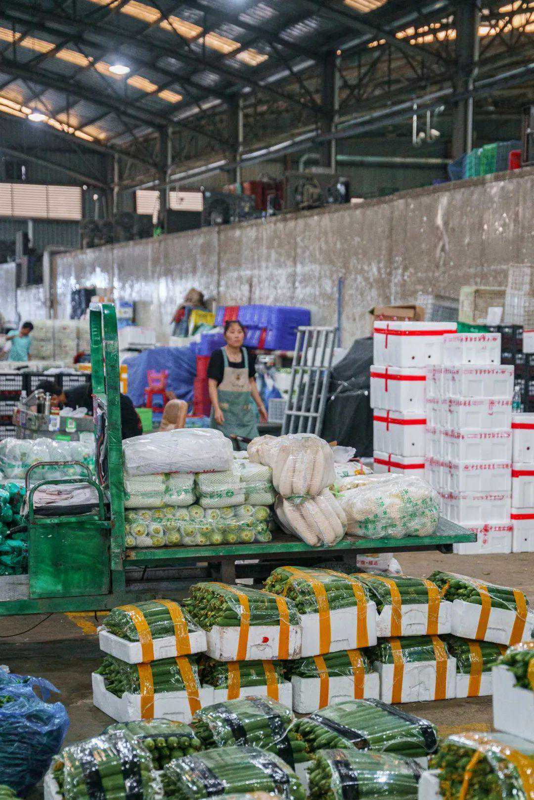 市场建筑面积约18万㎡,汇聚肉类、水产、蔬果、粮油等8大批发区域、5700余家商铺,365天24小时开门,保安光巡逻一圈就要走5公里。