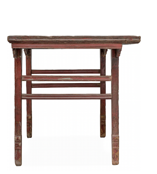 朱漆宝剑腿画案。松木,116.5厘米长,81.5厘米宽,85厘米高(刘山藏,张召摄)
