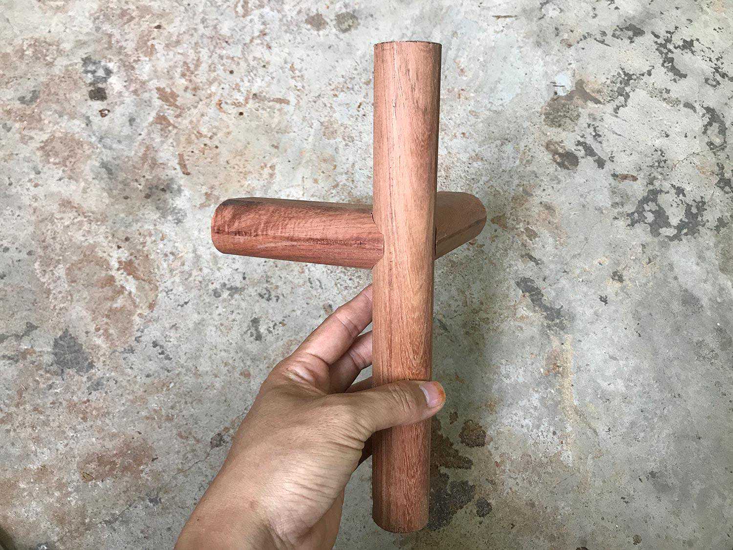 制作烟袋锅榫可以理解为正方形的方材直肩丁字接合,然后倒圆而成。