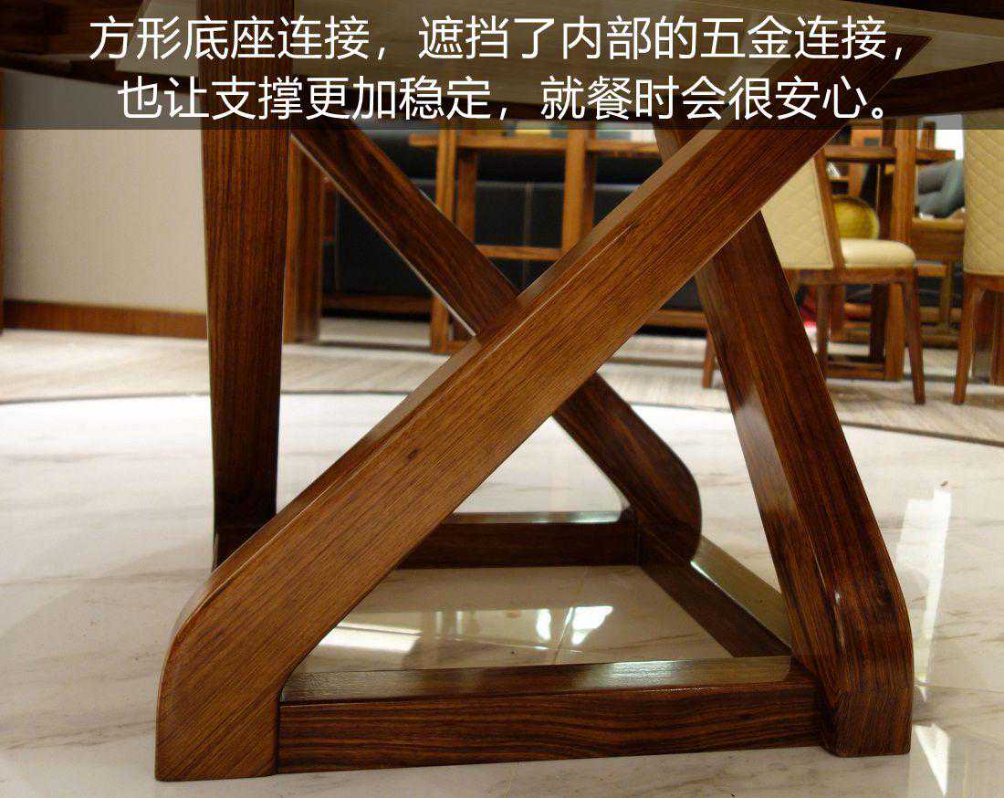 桌腿与桌面用方形底座连接,遮挡了内部的五金连接,也让支撑更加稳定,就餐时会很安心。