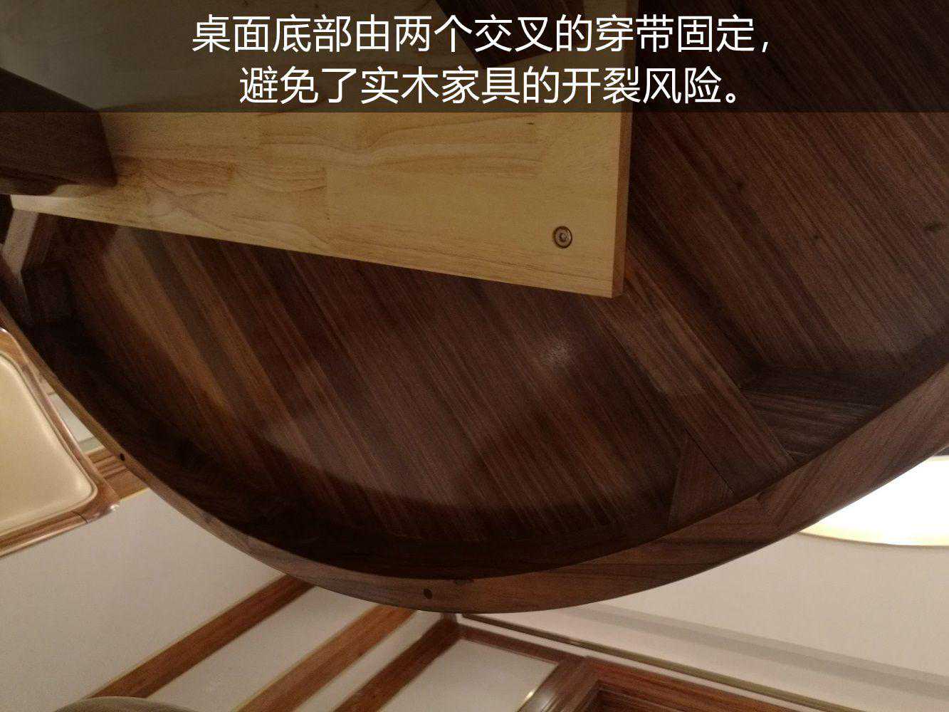 桌面底部由两个交叉的穿带固定,避免了实木家具的开裂风险。