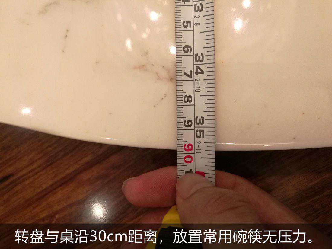 转盘与桌面边沿30cm的距离,放置常用的碗筷毫无压力。