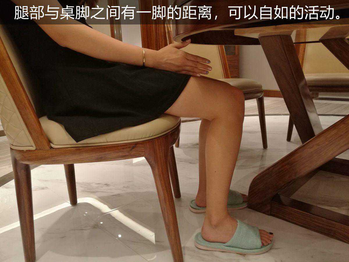 腿部与桌脚之间有一脚的距离,可以自如的活动。内收式桌腿,可以随意放腿,不必担心硌脚。
