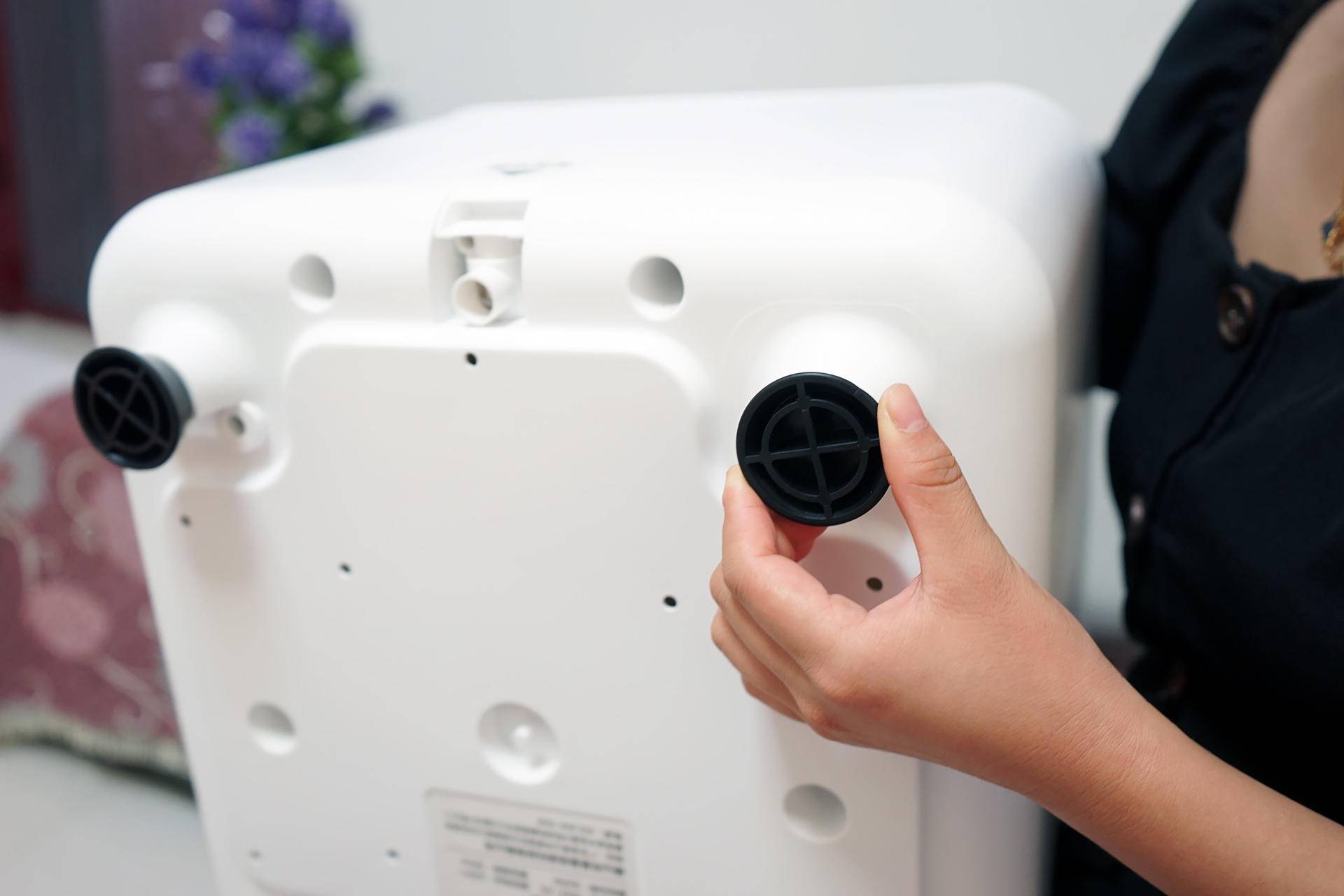 足浴器底部有四个防滑脚垫,初次使用需要将脚垫插入到预留的孔里面,安装方便!在使用时脚垫能保持很好的稳定性。不仅防滑,而且能保护我们的地面!在底部还隐藏了一个排水孔,方便我们带入卫生间然后打开排水孔,然后就等它自动排水了,排水完成后记得关闭排水孔,防止下次使用漏水。