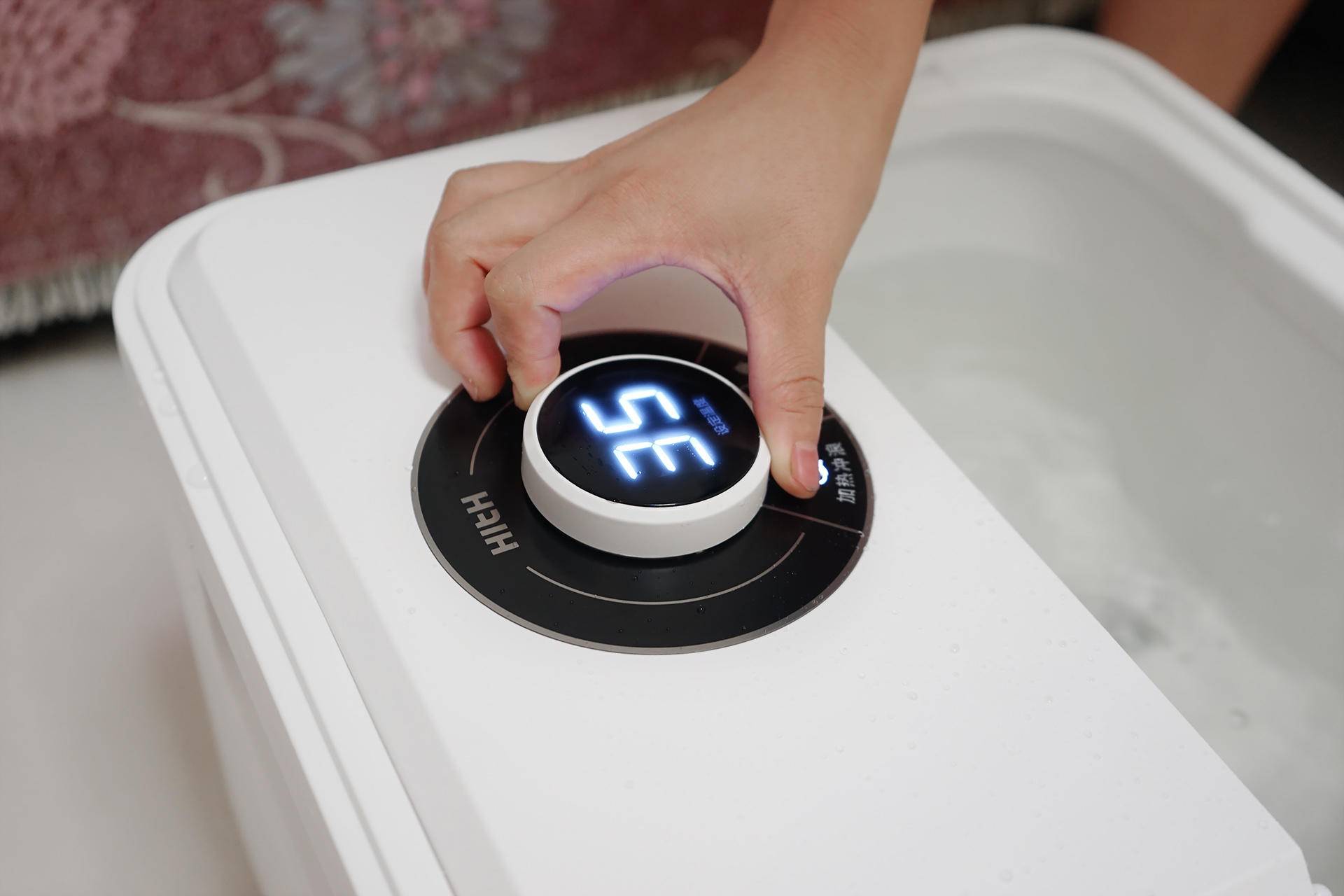 当开启自动按摩功能后,内置的高端静音电机就会带动按摩盘转动,初次使用笔者觉得脚底特别痒,不过使用了几分钟后就特别舒服了,而且是那种很享受的感觉!通过水温探测器精确控制水温,以后再也不会泡一会就变冷水了,冬天泡脚简直是神器。