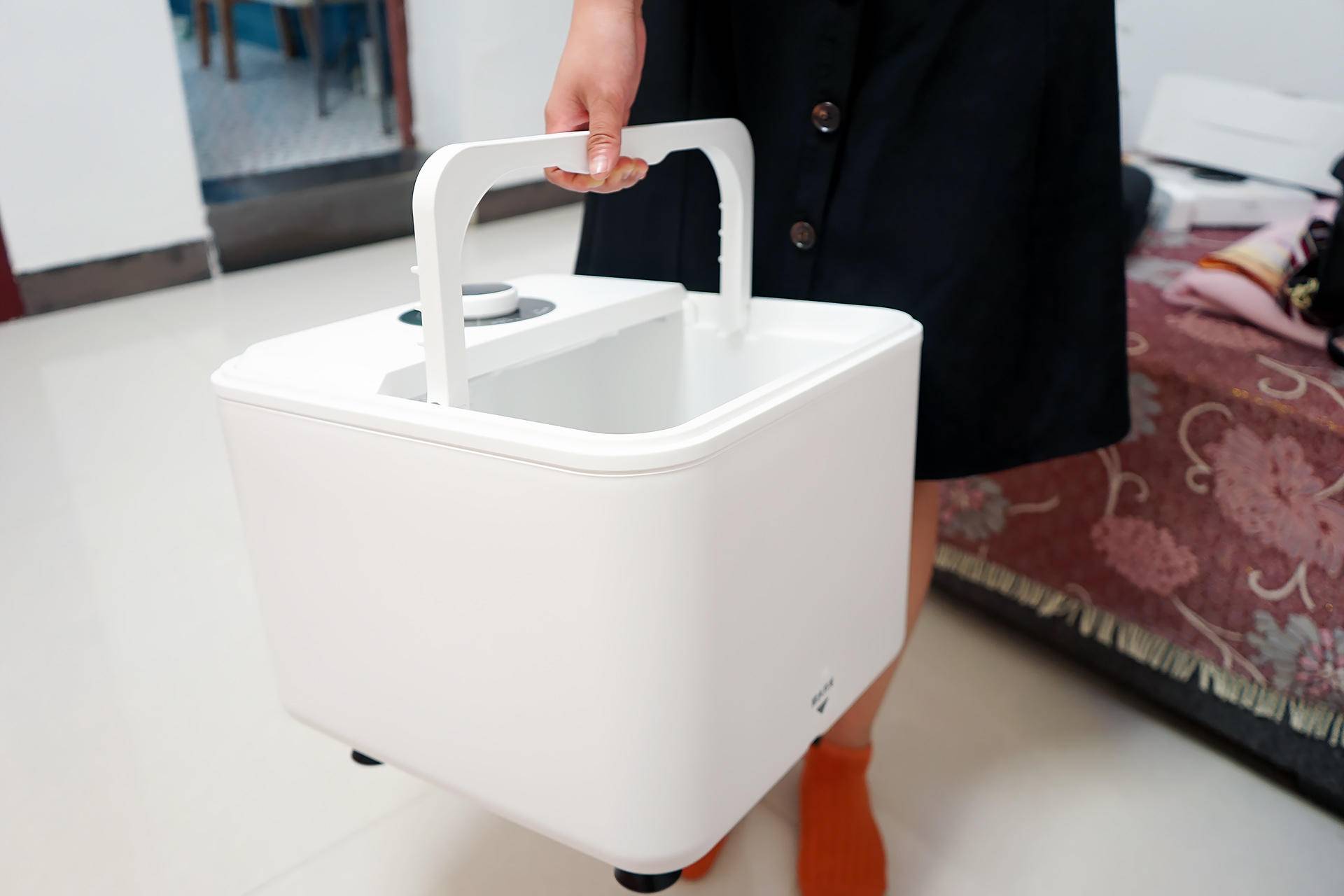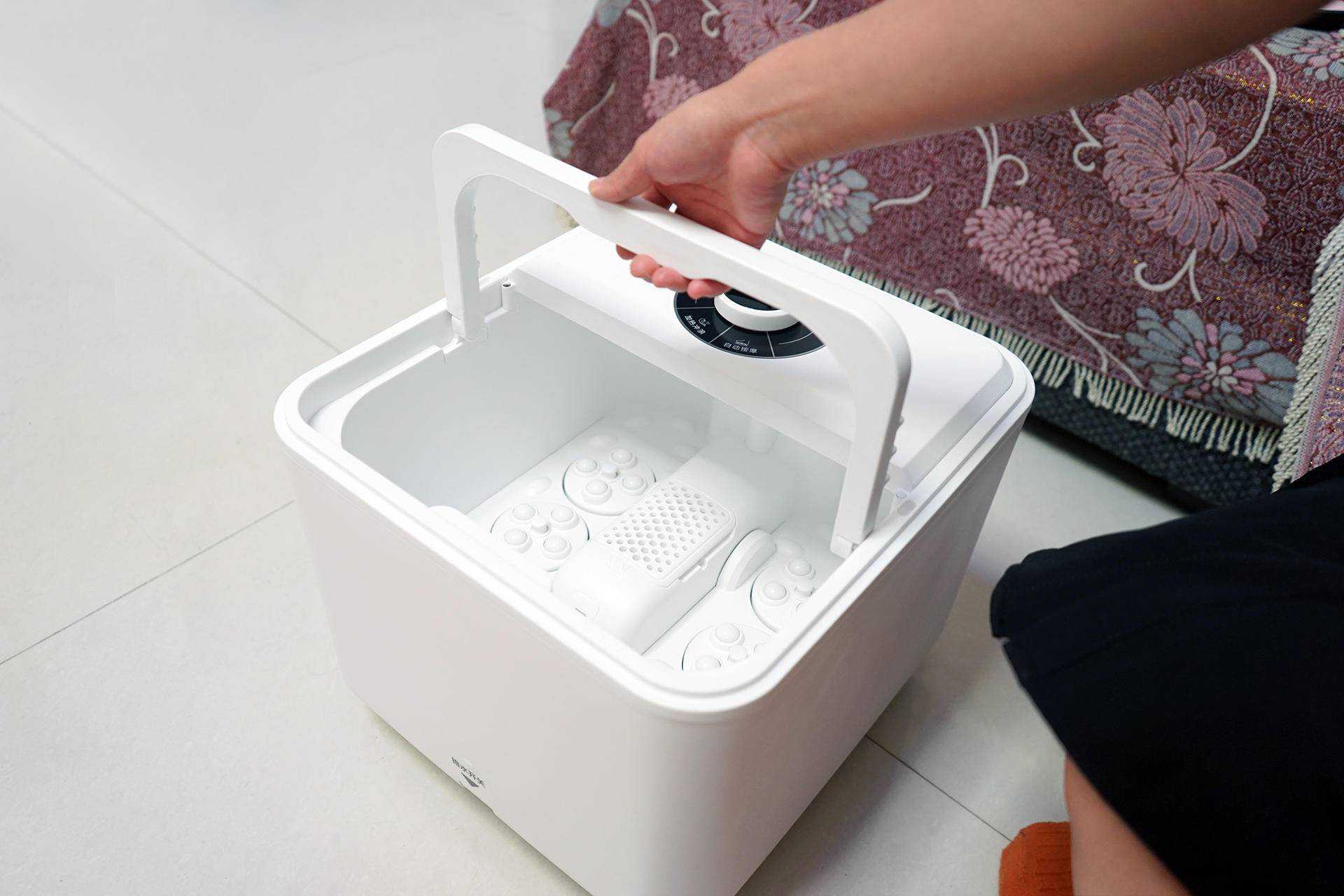 一般泡脚时长控制在20~30分钟为最佳,时间长了对我们身体也会有负担,泡脚中途可以喝点温热水,这样对我们的身体是有好处的!泡完脚,我们可以打开提手带入卫生间排水,然后等彻底排完水后拿到房间放置,足浴器尺寸正好,而且还自带按摩垫,不使用时,我们就可以拿它当脚凳,真是一机多用途啊!