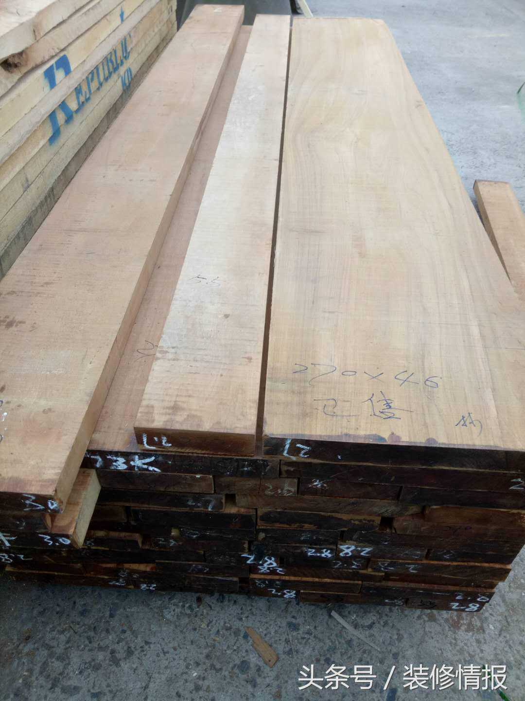 缅甸柚木的原木材料如上图所示,其实色彩是有点偏黄的,很多读者非常喜欢这样的色彩。