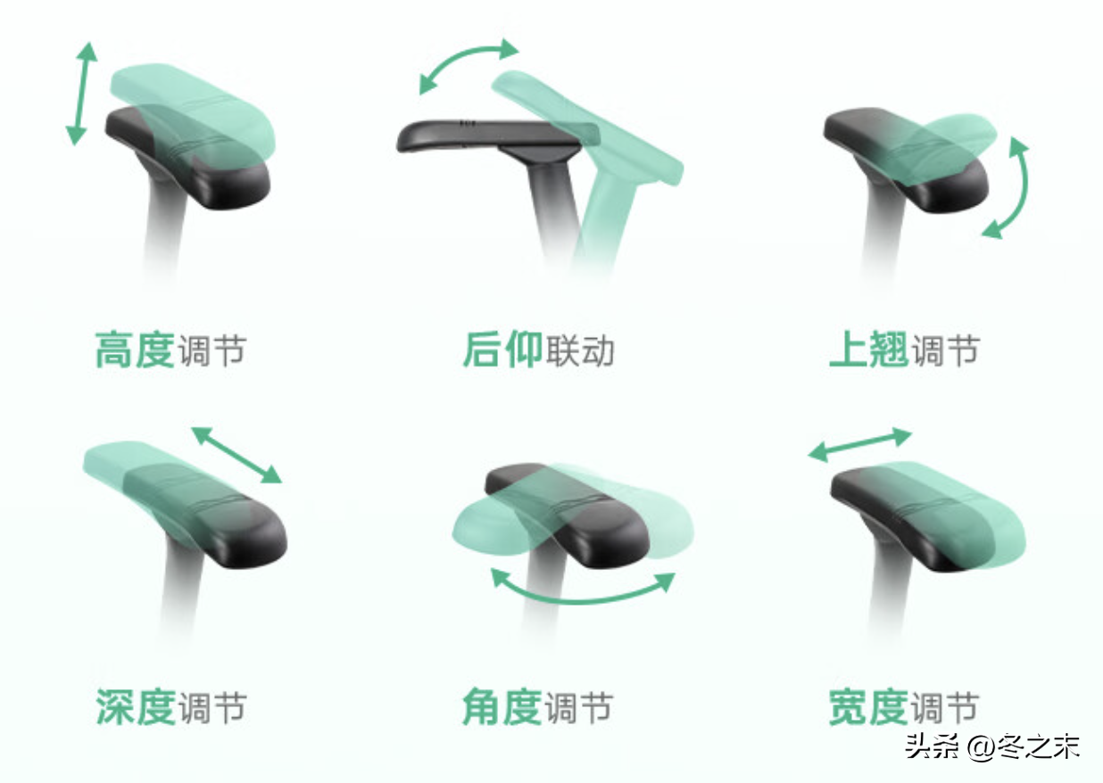 上图基本涵盖了人体工学椅的所有调节,但是一些入门款不会有这么多,那么我们该怎么选呢?