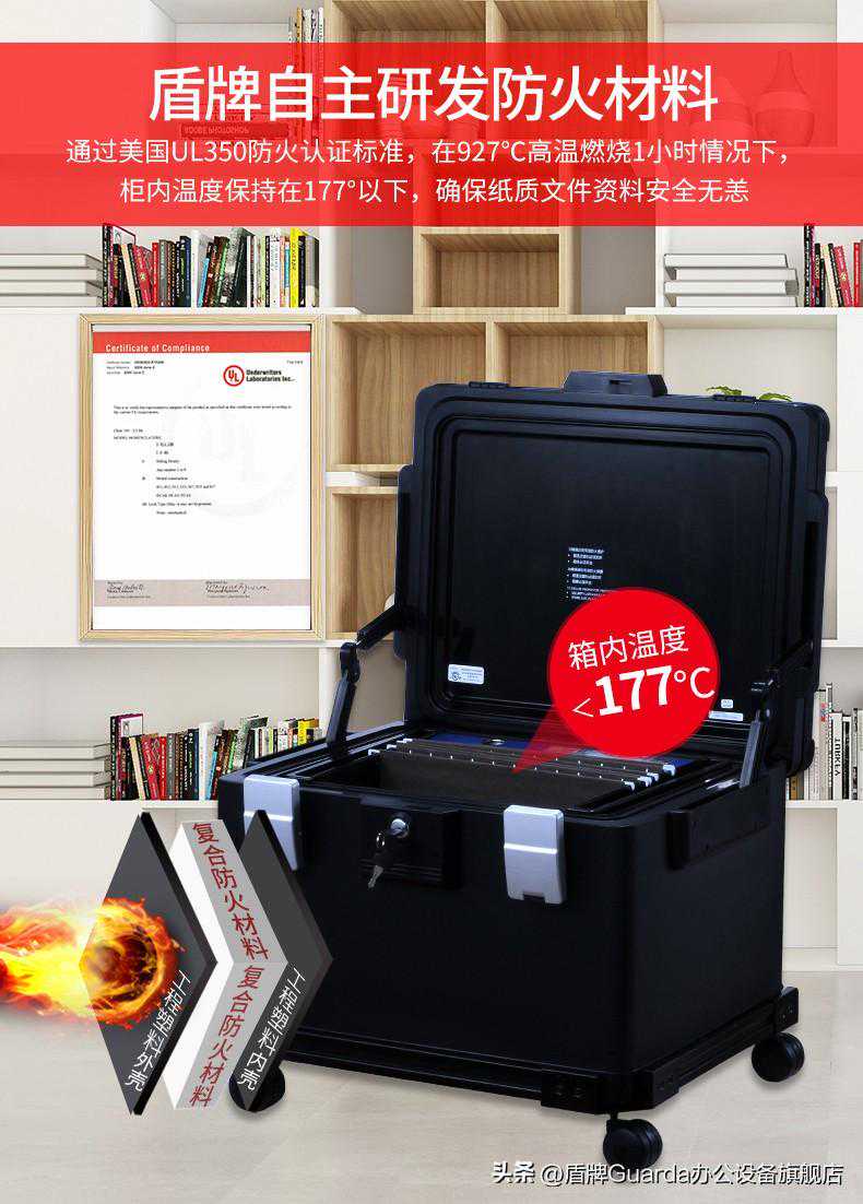 总之,文件防火保险柜不仅提供了有效的文件防火和防盗能力,更为您在日常工作中提供了便利和效率。因此,您在保管证件资料的时候,应该优先考虑使用文件防火保险柜进行存储,以更好地确保文件的安全与完整性。盾牌保险箱,与传统保险箱不同,所用材料不是钢材铁板,而是新型的环保复合防火材料,且提供不同价位、大小、型号的防火防水保险箱选择,都是经过严格的防火测试以及防水测试的实验。