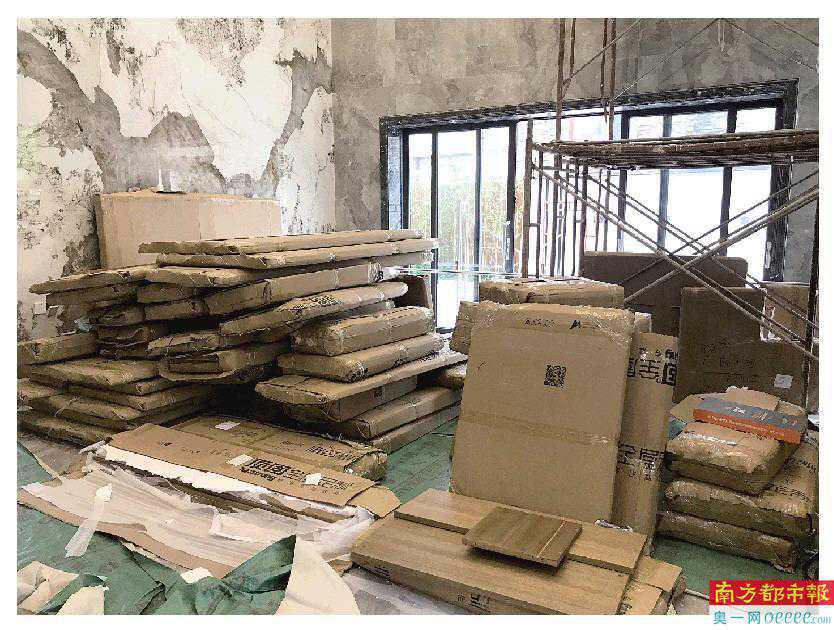 5月25日,南都·湾财社记者来到了装修地址处,这是一栋3层的别墅,尚未装修,每一层都堆满了家具板材,大多尚未拆封,纸皮包装上印有“顶固全屋定制专注高端衣柜”的字句,还有收货人邵某的姓名及联系方式。