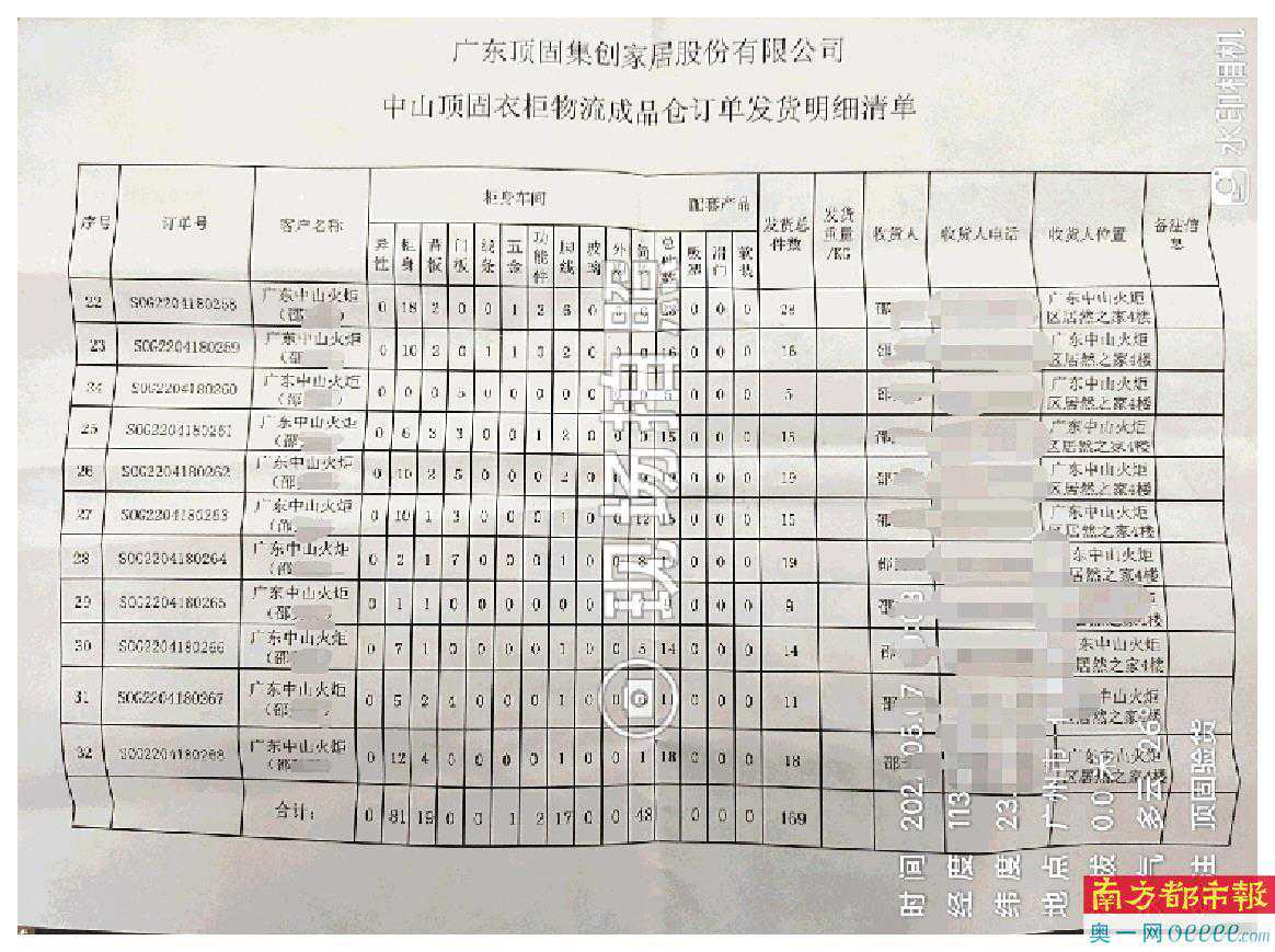 然而,根据5月7日现场点货时邵某提供给吴先生的发货明细清单,其购买了柜身、背板、五金、功能件等169件货物,收货人为邵某,收货地址为广东中山火炬开发区居然之家4楼,抬头为《广东顶固集创家居股份有限公司中山顶固衣柜物流成品仓订单发货明细清单》。