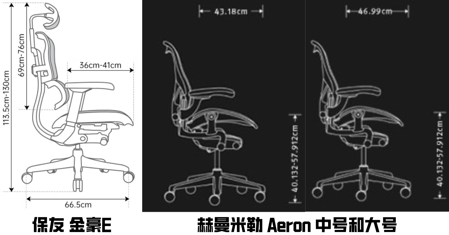对比下国内外热门椅子,国内椅子的坐垫长度为国人专门设计,一般比较短,金豪E的坐垫活动范围36-41cm,最大41cm都到不了Aeron的中号43cm,所以很多人说Aeron卡大腿导致腿麻,其实加个脚踏就好了,就算买的国内椅子,我也推荐买个脚踏,提高坐姿舒适性,舍不得花钱用硬纸盒也行。