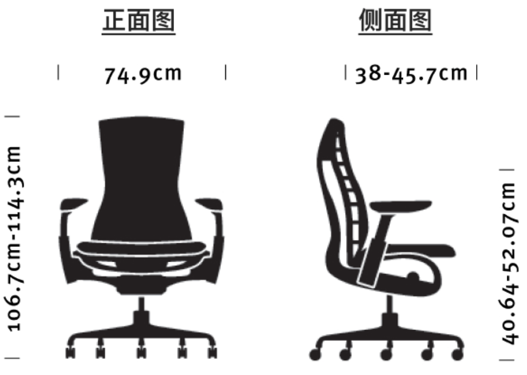最核心的选购项是尺寸从我最熟悉的Aeron说起,Aeron他分大小号,并且官方专门提供了不同尺寸的适配人群。