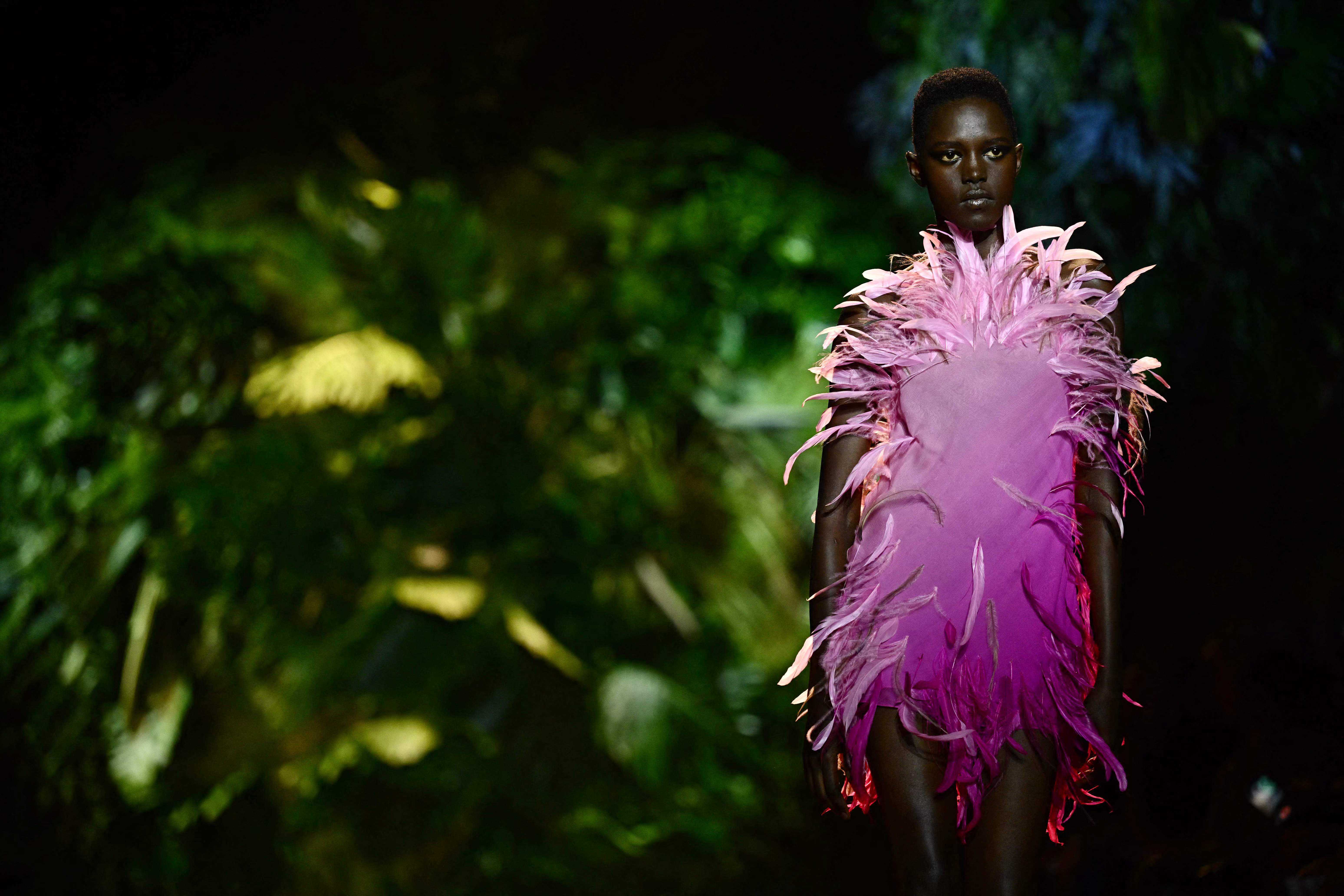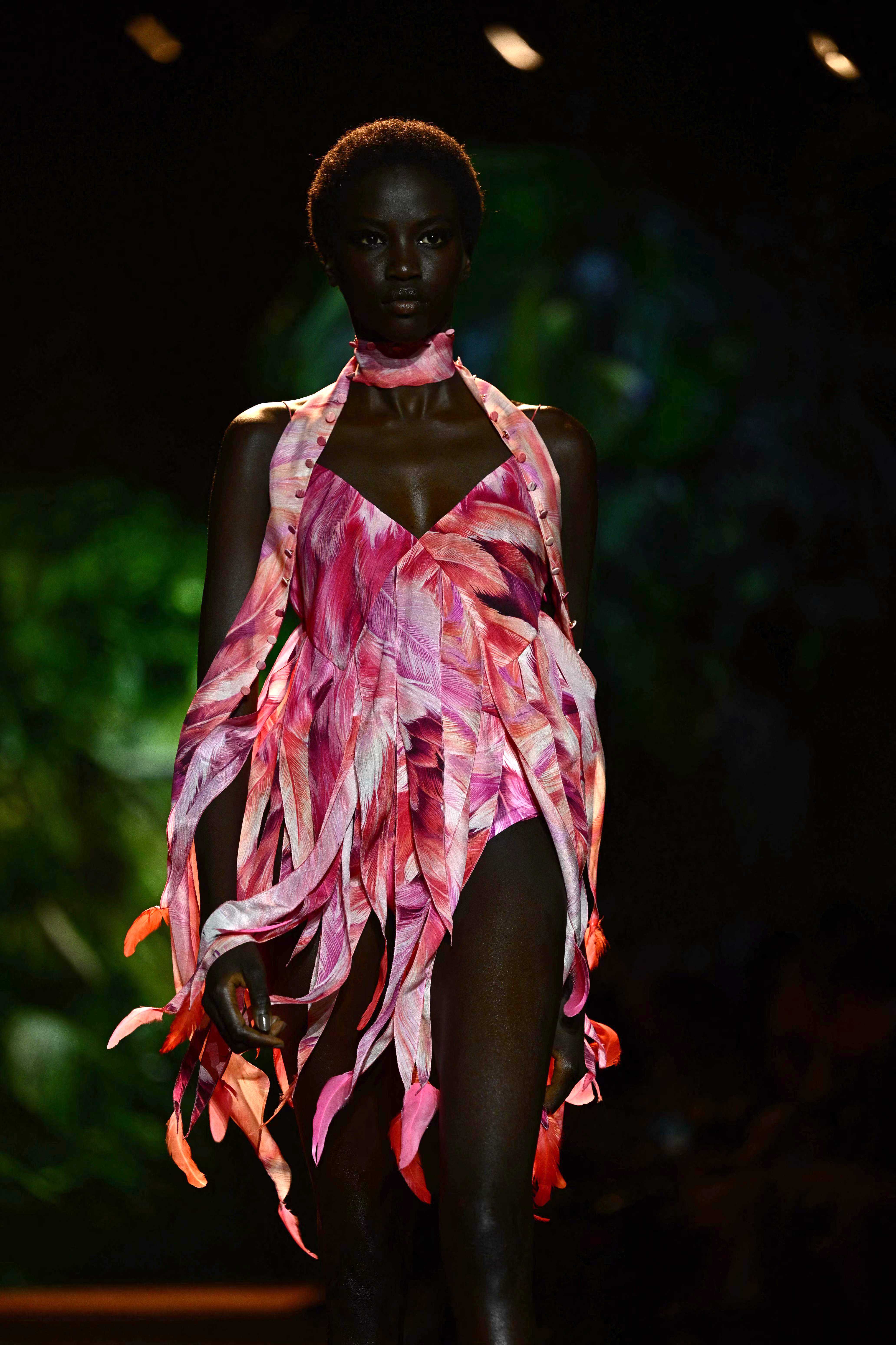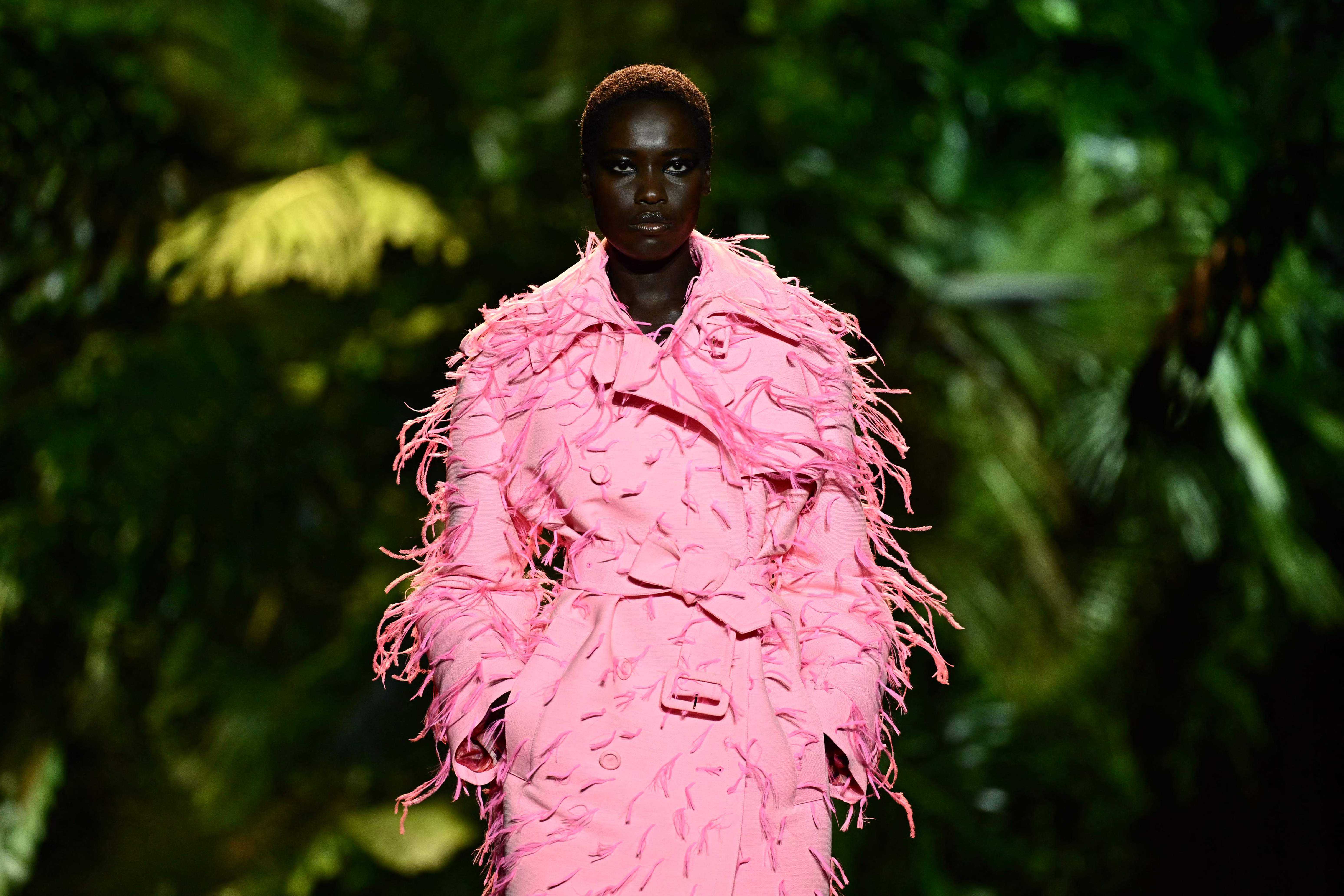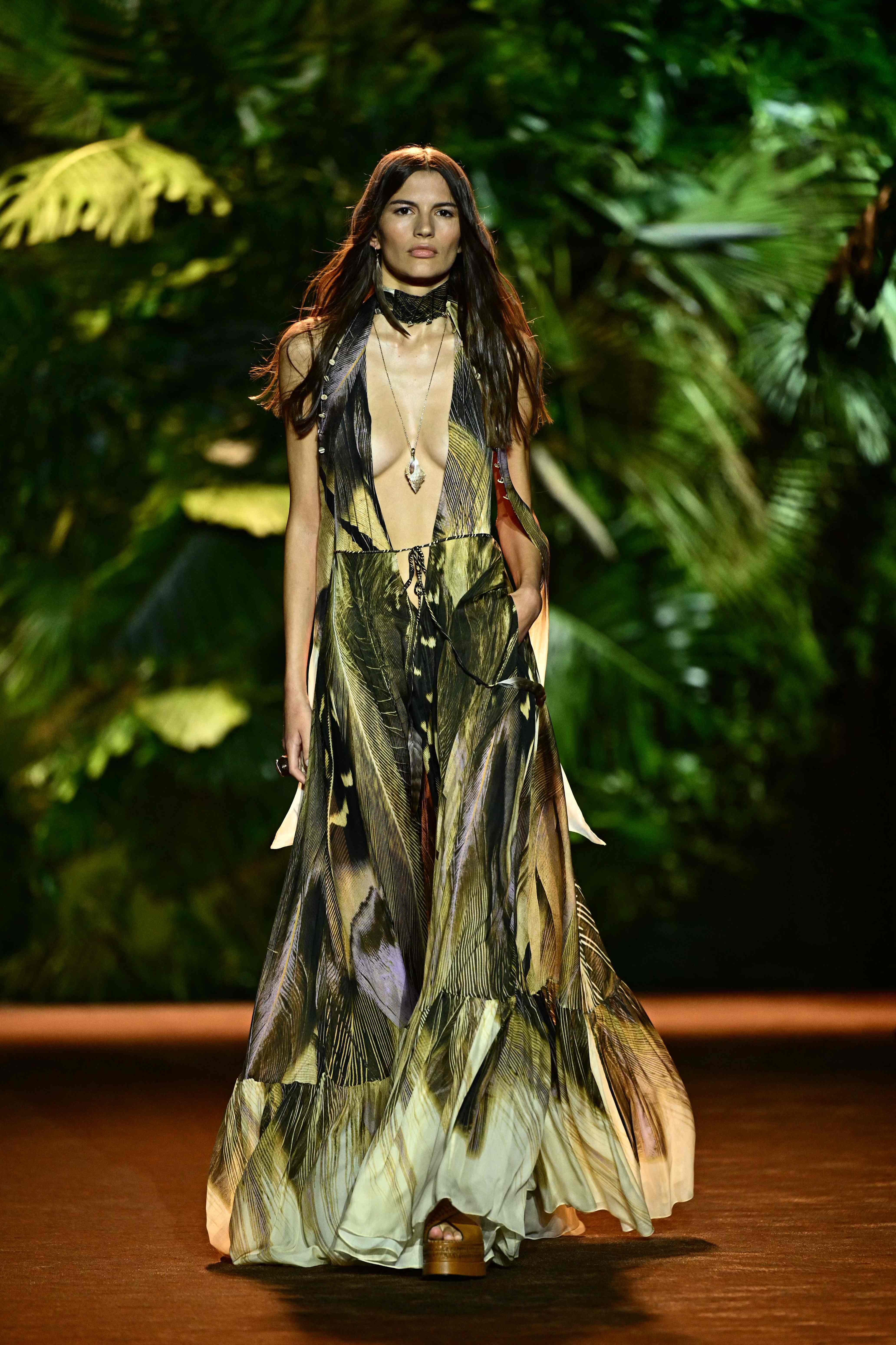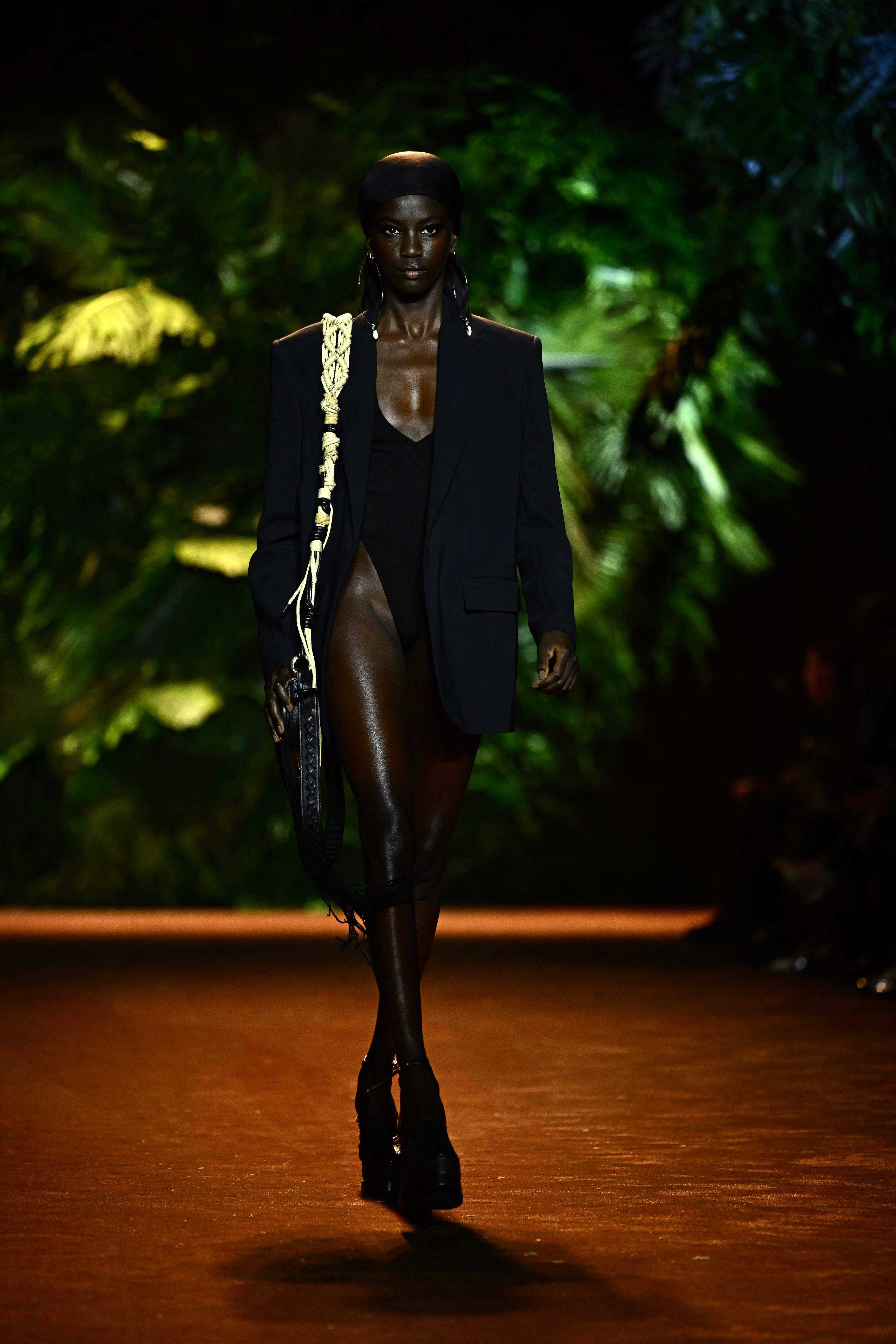9月20日,模特在意大利米兰时装周上展示RobertoCavalli品牌的2024春夏新款服装。新华社/法新