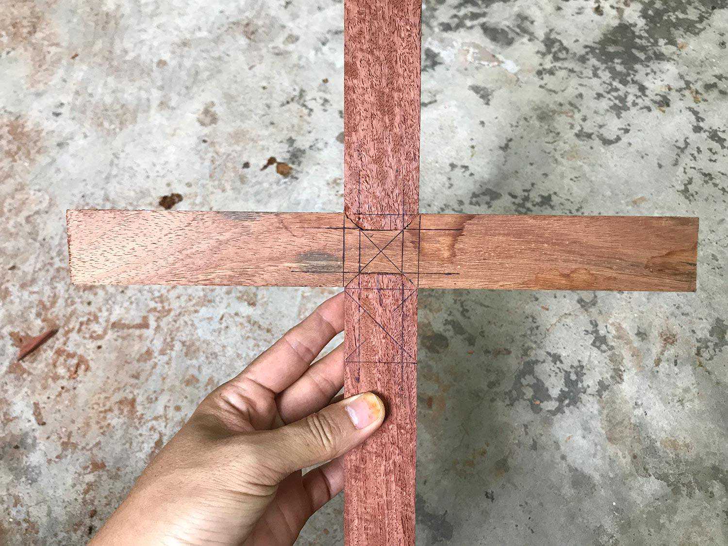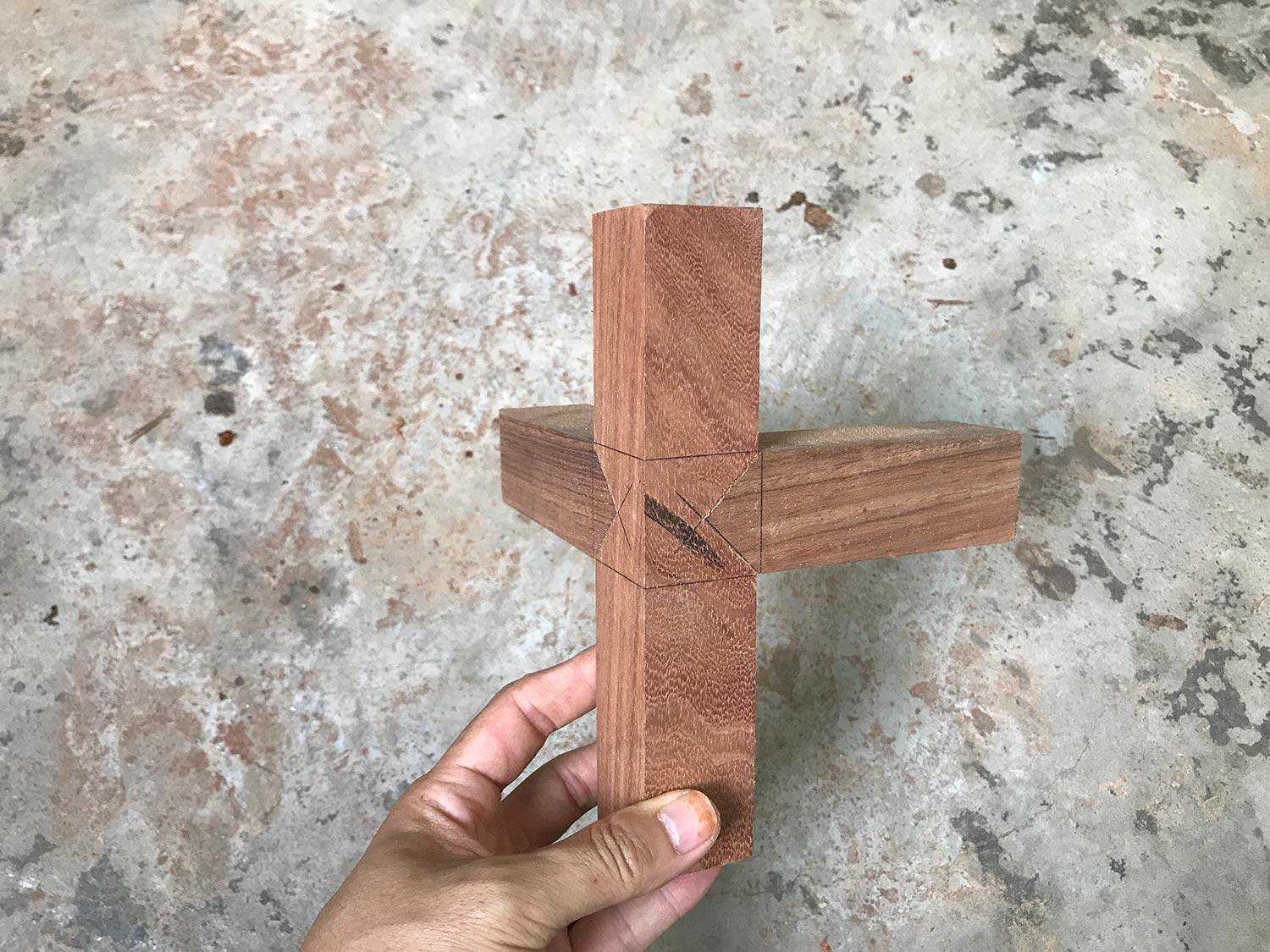 两根料十字相交,两根料各挖去半扣合。