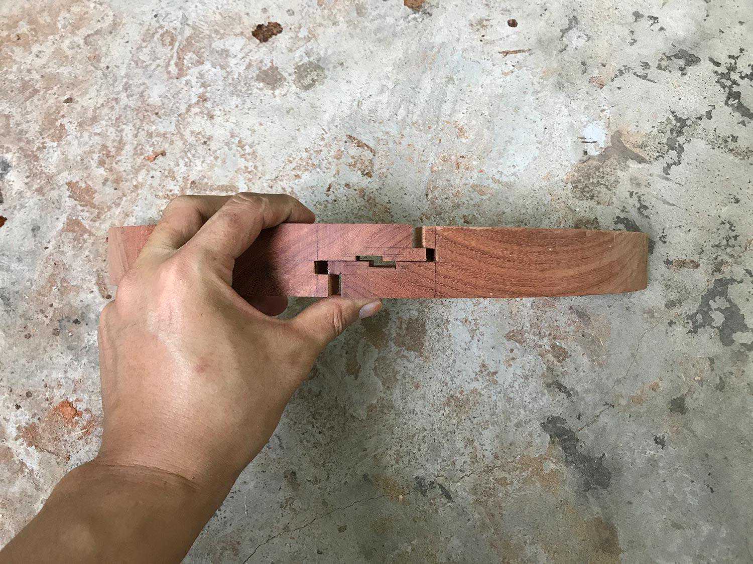 22、楔钉榫之方材弧形明榫接合
