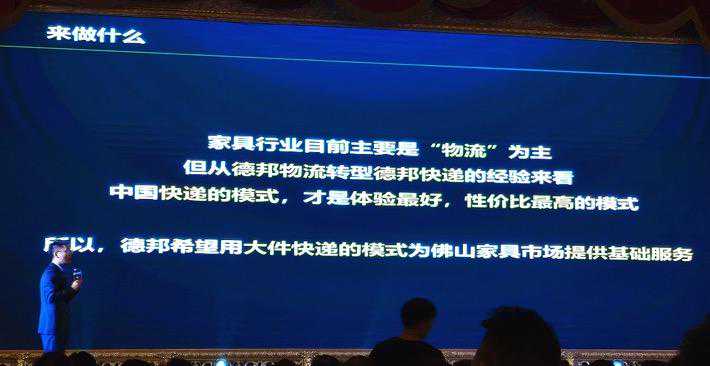 如何能够令消费者网购家具也能像网上卖衣服鞋子一样方便?德邦快递市场本部总裁左高鹏从产品需求归类角度,具体介绍了3.0版高端化“送装一体”的优势:一方面,对重量在3-60kg的凳子、椅子、床头柜、茶几等小板式家具,普通快递企业往往会存在限收、缺乏大件分拣设备、末端配送设施和服务不完善等问题,客户网购后还需自行安装,而德邦采用大件快递运输模式强调时效、服务和轨迹可视等。据介绍,目前菜鸟家装仓,卫浴、家具的中件,以及林氏木业小板式均是通过德邦来发货。