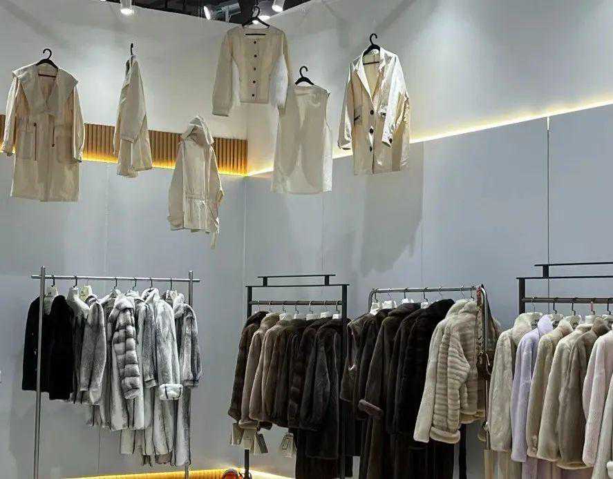 浙江格莱美服装有限公司现场负责人也介绍了旗下的“别素”与“革言”品牌:“我们在皮衣皮草领域深耕二十多年,产品品质与设计获得了客户的广泛认可。目前我们的品牌已经成功打出去了,一些客户也会保留我们衣服上的品牌标,以我们的品牌对外销售。”