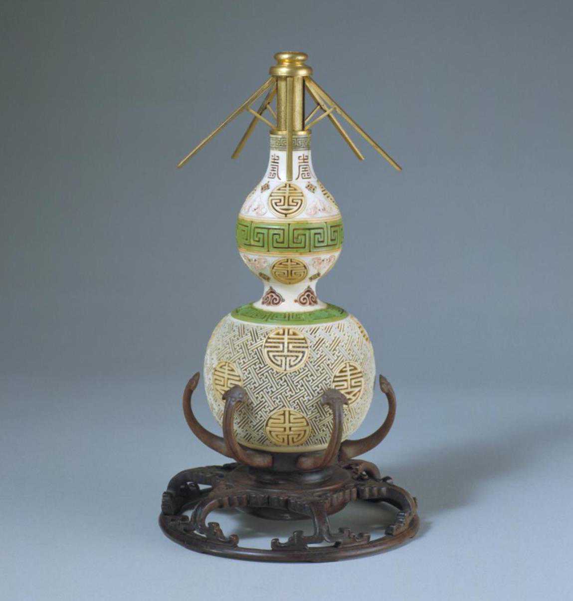 清代象牙雕葫芦式冠架