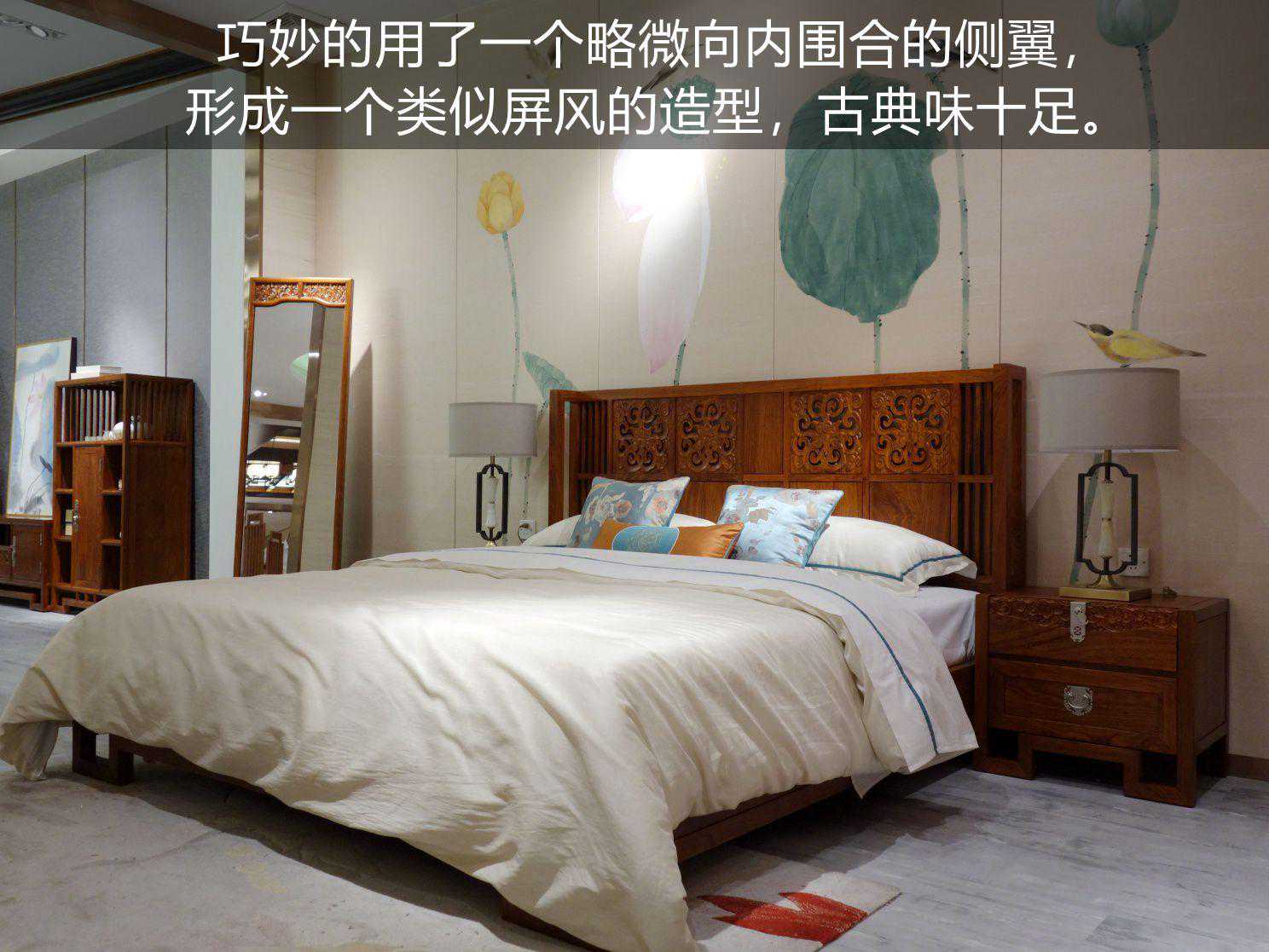 柏森大观A1525床,巧妙的用了一个略微向内围合的侧翼,形成一个类似屏风的造型,古典味十足。即使不做背景墙,装饰效果也是足够的。睡的时候也会多了点围合的安心感。