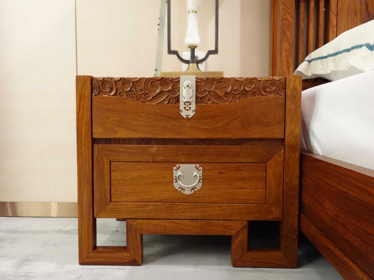 配套床头柜,造型跟床尾呼应,视觉统一度非常高。