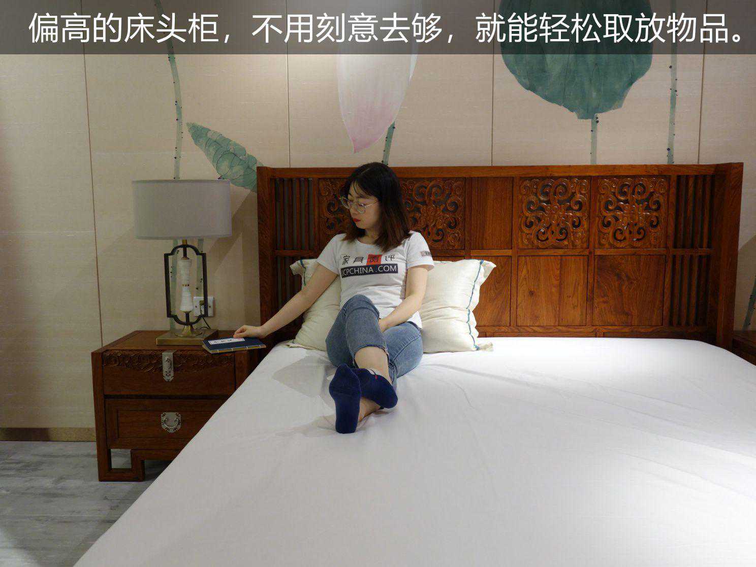 床尾进行加高,呼应了床屏的“气势”,还能防止床垫下滑。搭配回形床脚,让腿部的支撑更为沉稳,同时,也进一步加强了中式韵味。