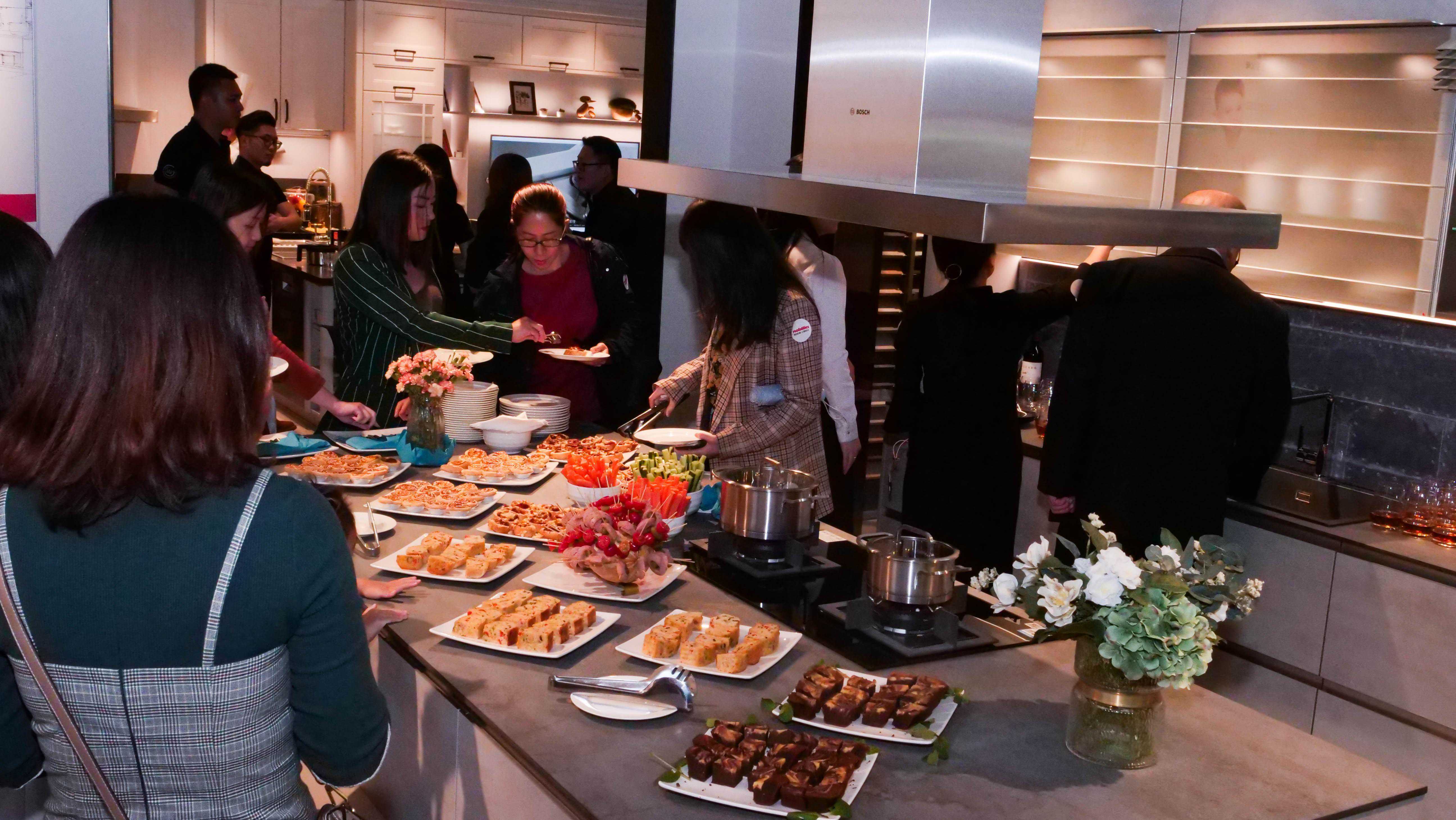 展厅的招待酒会随即开始,精美的法式冷餐和黑醋栗甜酒令到场的嘉宾畅享味觉盛宴。米其林三星大厨的现场制作引起嘉宾围观,精致美味的分子料理和口感至臻的真空低温烹饪的牛肉另在场嘉宾惊叹。
