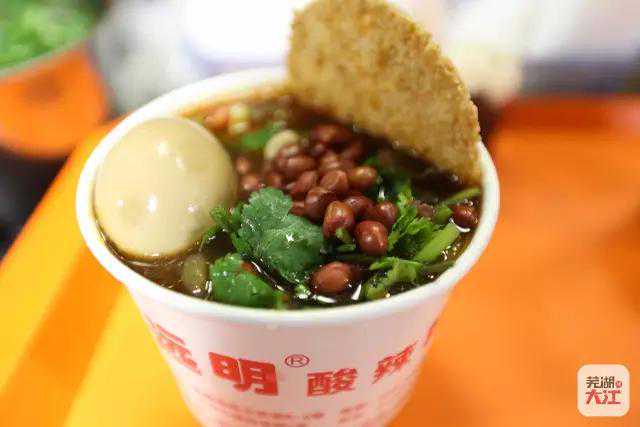 老板很有意思,说从江北过来了这么多年,已经变成一个地地道道的芜湖人,远明酸辣粉真是完美体现了酸和辣这两个特点,配上香菜花生米和锅巴,什么叫爽的不要不要的立刻就知道了。