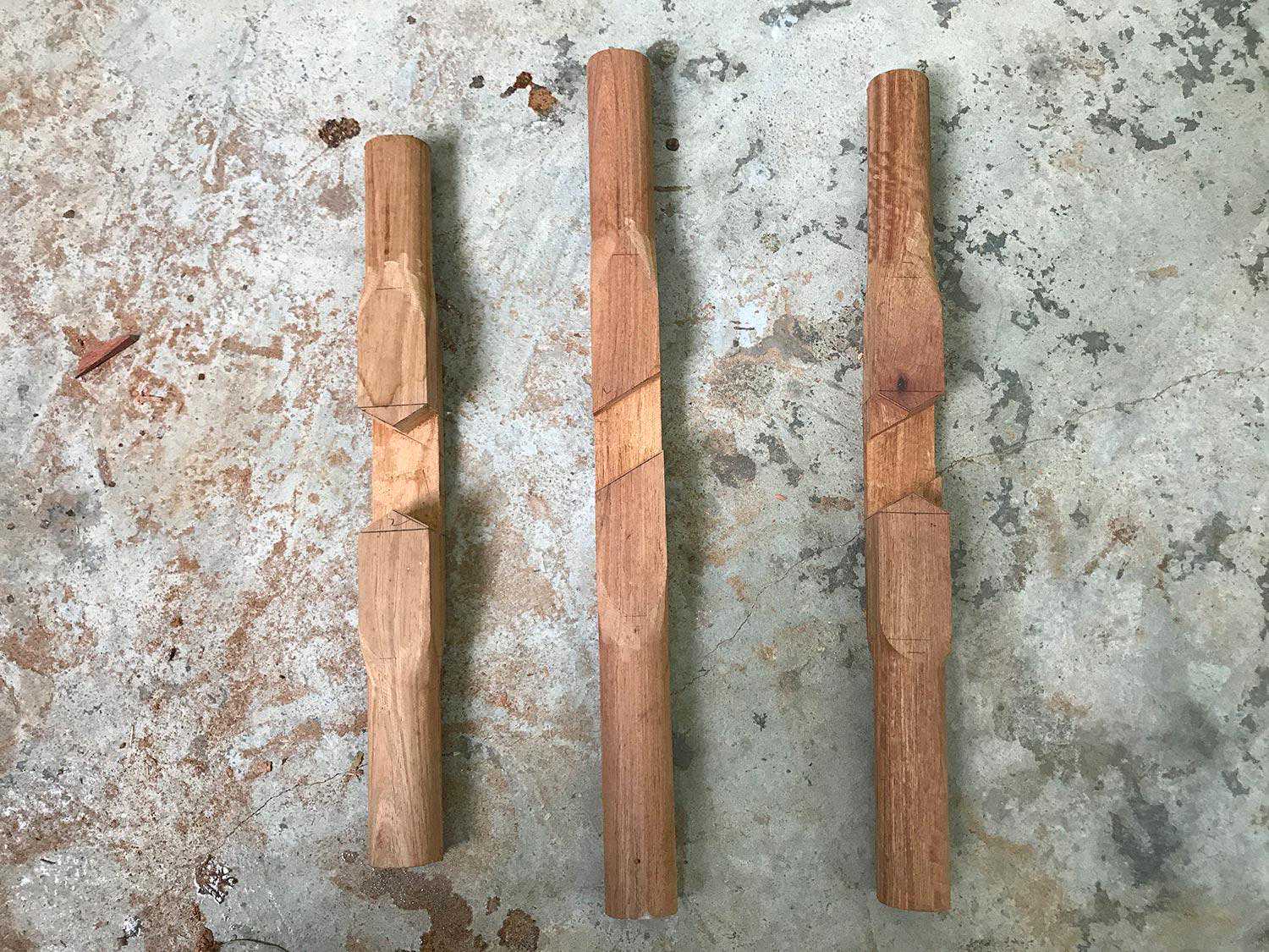 制作烟袋锅榫可以理解为正方形的方材直肩丁字接合,然后倒圆而成。