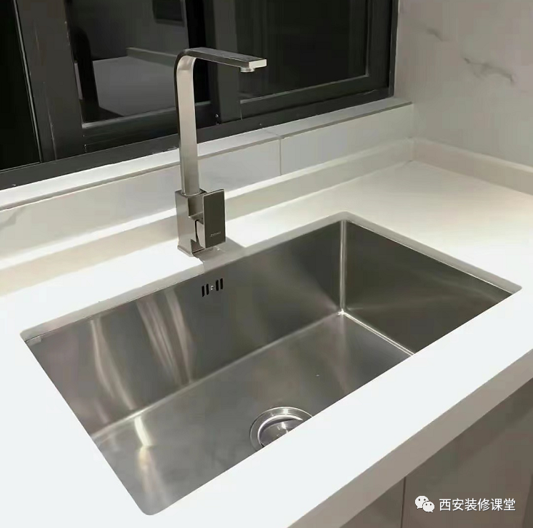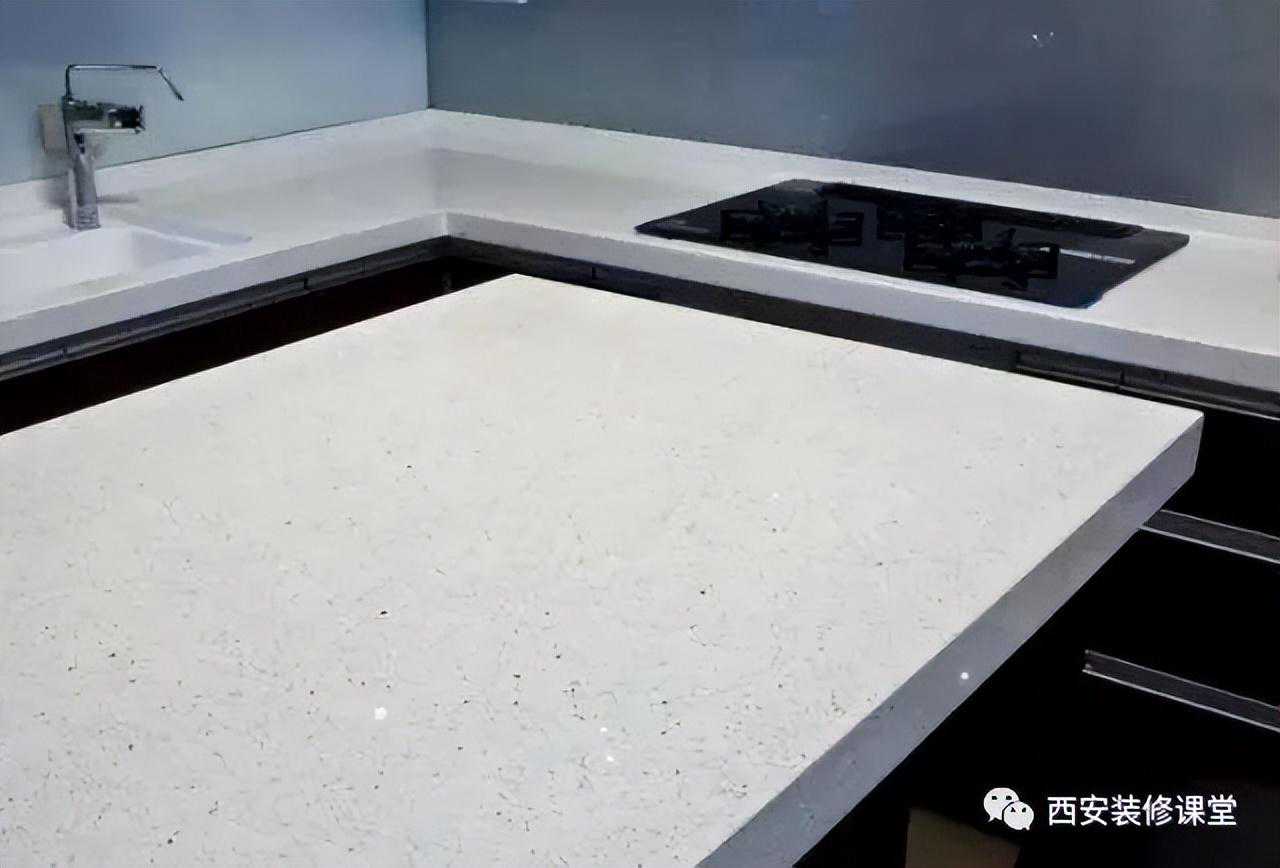▲橱柜台面主流产品还是石英石,当然好一点的可以用岩板,费用一般较高;一般普通国标石英石台面厚度1.5cm,这个厚度已经足够用了,因为橱柜制作上方必须用到与柜体同材质的垫板,国标1.8cm厚度,这样下来其实家里的台面厚度是3.3cm。这个厚度完全没有必要高价用更厚的石英石了。