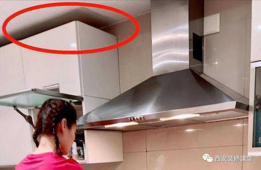 ▲吊顶的高度一般是多少?你以为这个是厨房排烟孔和下水管高度决定吗?大错特错了!厨房吊顶的高度参考排烟孔的高度以及水管高度,最重要的是定制的时候,烟机和吊柜高度决定。也就是你家吊顶以及定制以及烟机每一个都得综合协调,脱离任何一个尺寸,吊顶就可能做错,甚至导致吊柜与吊顶有藏污纳垢的缝隙了。