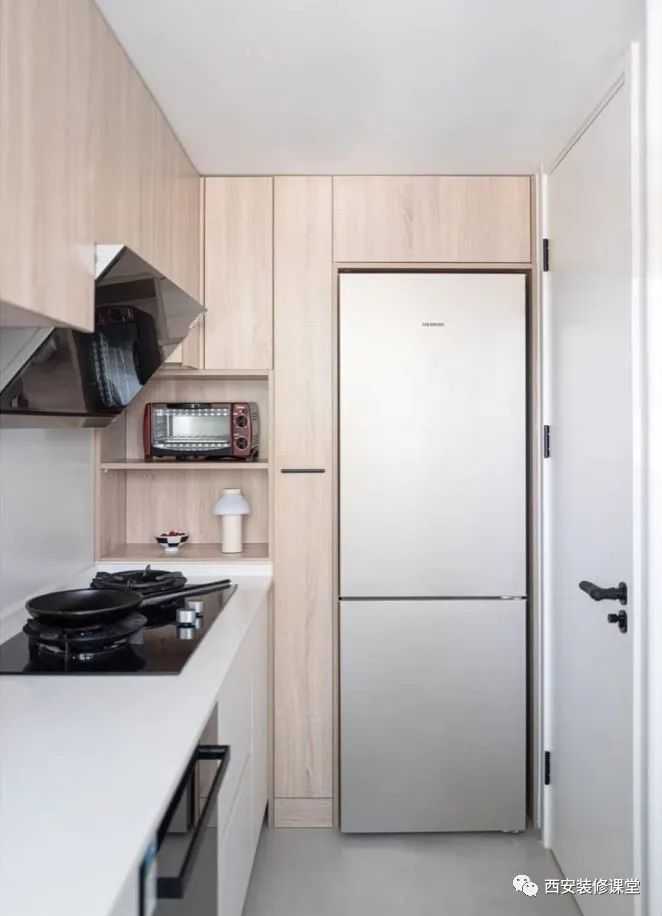 ▲厨房镶嵌电器的非常多,此时的尺寸其实和电器有很大关系,例如冰箱,一定要购买下散热或者后散热,千万不要购买左右散热,这样就会导致定制必须留出很大的空隙,难看不说而且浪费空间。所以严丝合缝镶嵌一般做法是左右最多留出5mm的缝隙,这样才能更美观,不浪费空间。实际操作还得考虑柜门的开启方式以及内部抽屉拿取的空间,并没有那么简单。