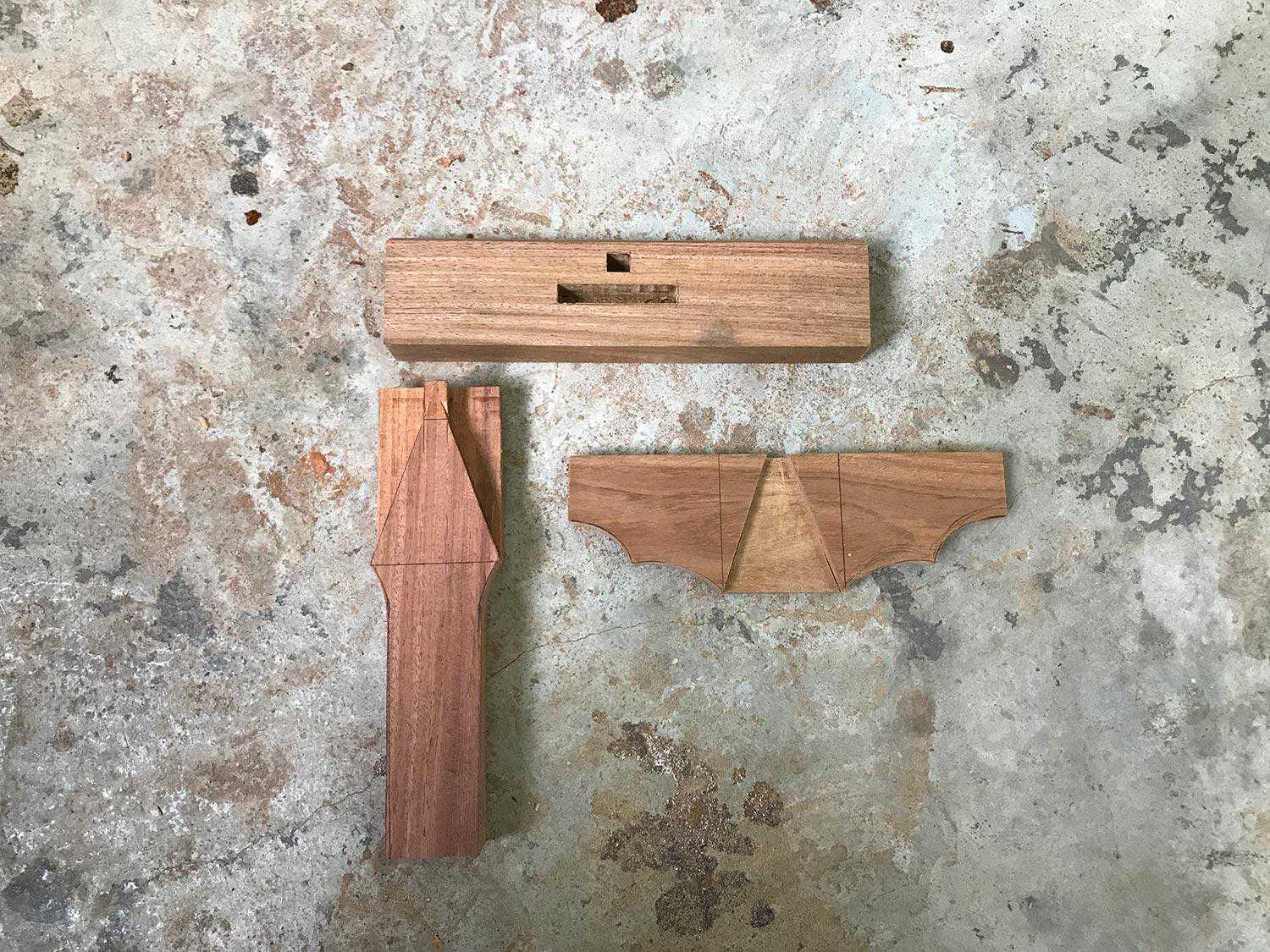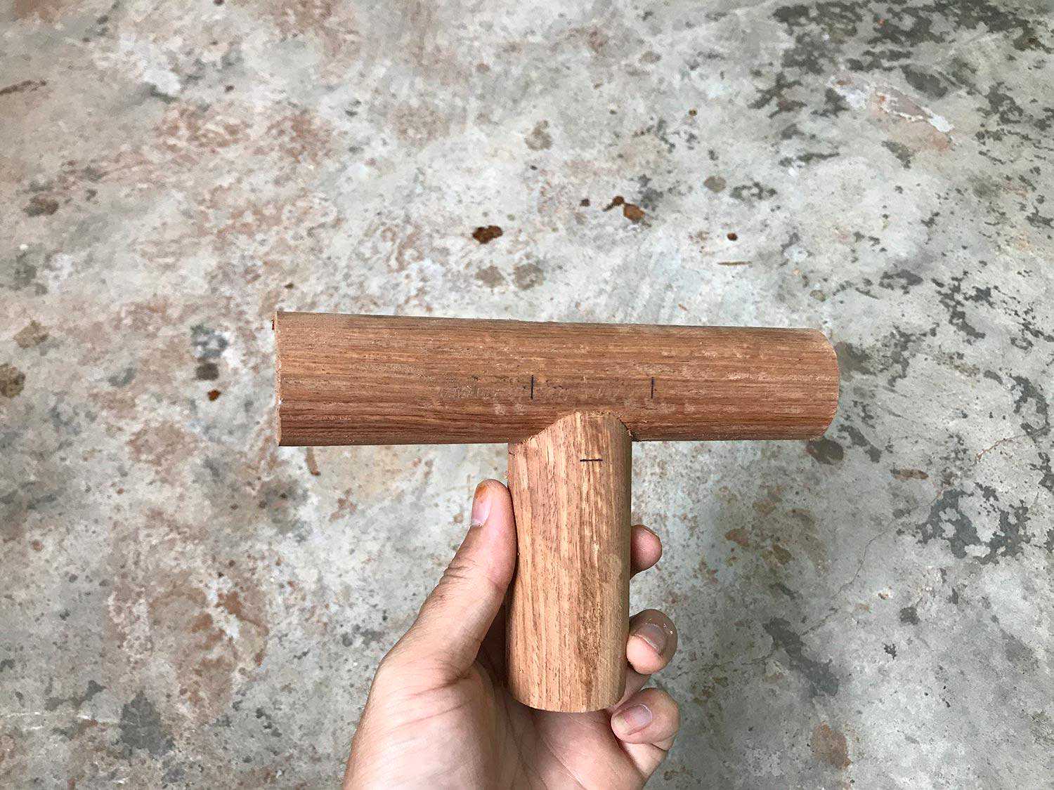 制作烟袋锅榫可以理解为正方形的方材直肩丁字接合,然后倒圆而成。