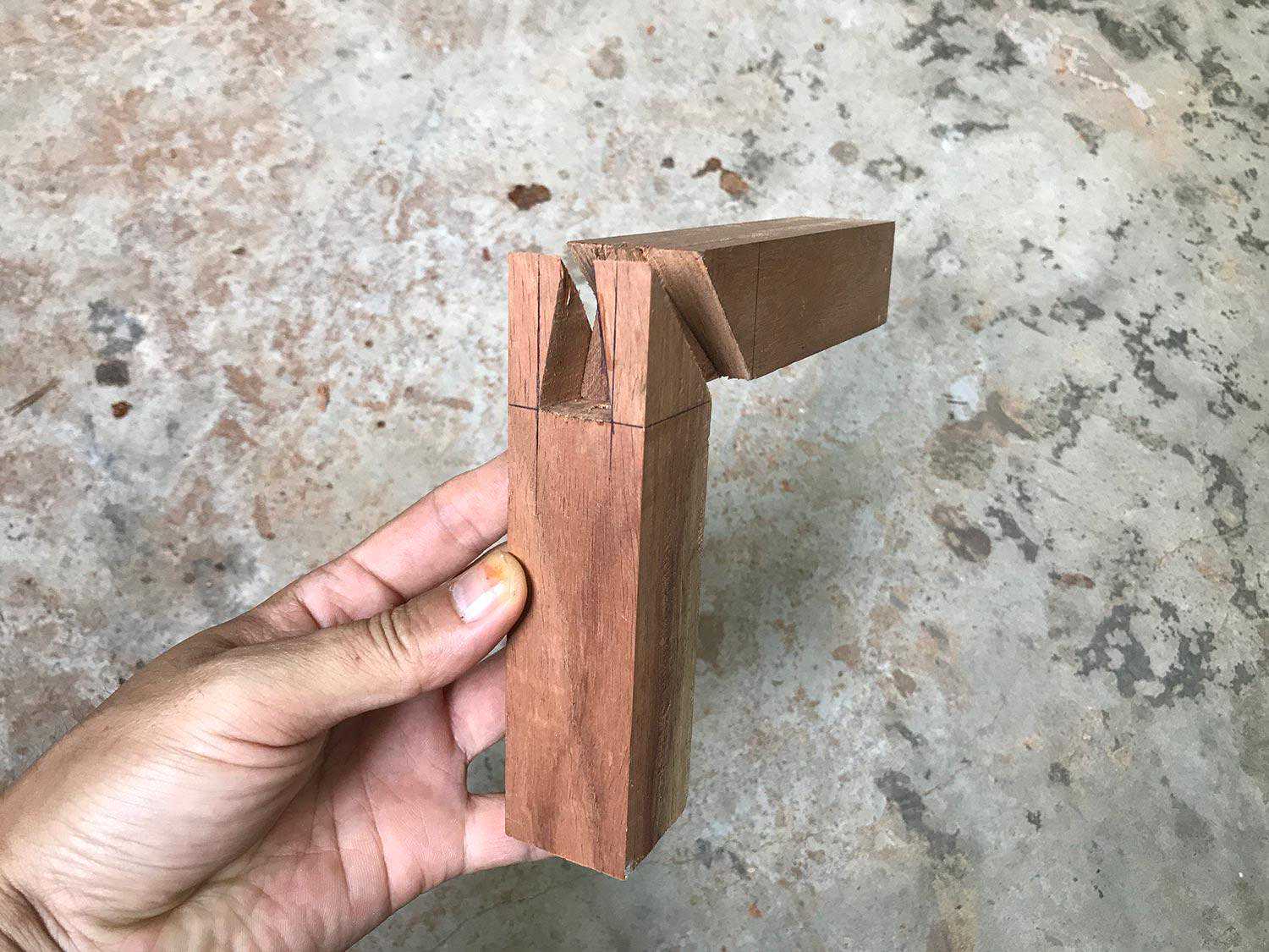 燕尾榫根部窄,端部宽,呈大头状。这种方法很传统,是平板直角接合最常用方法。