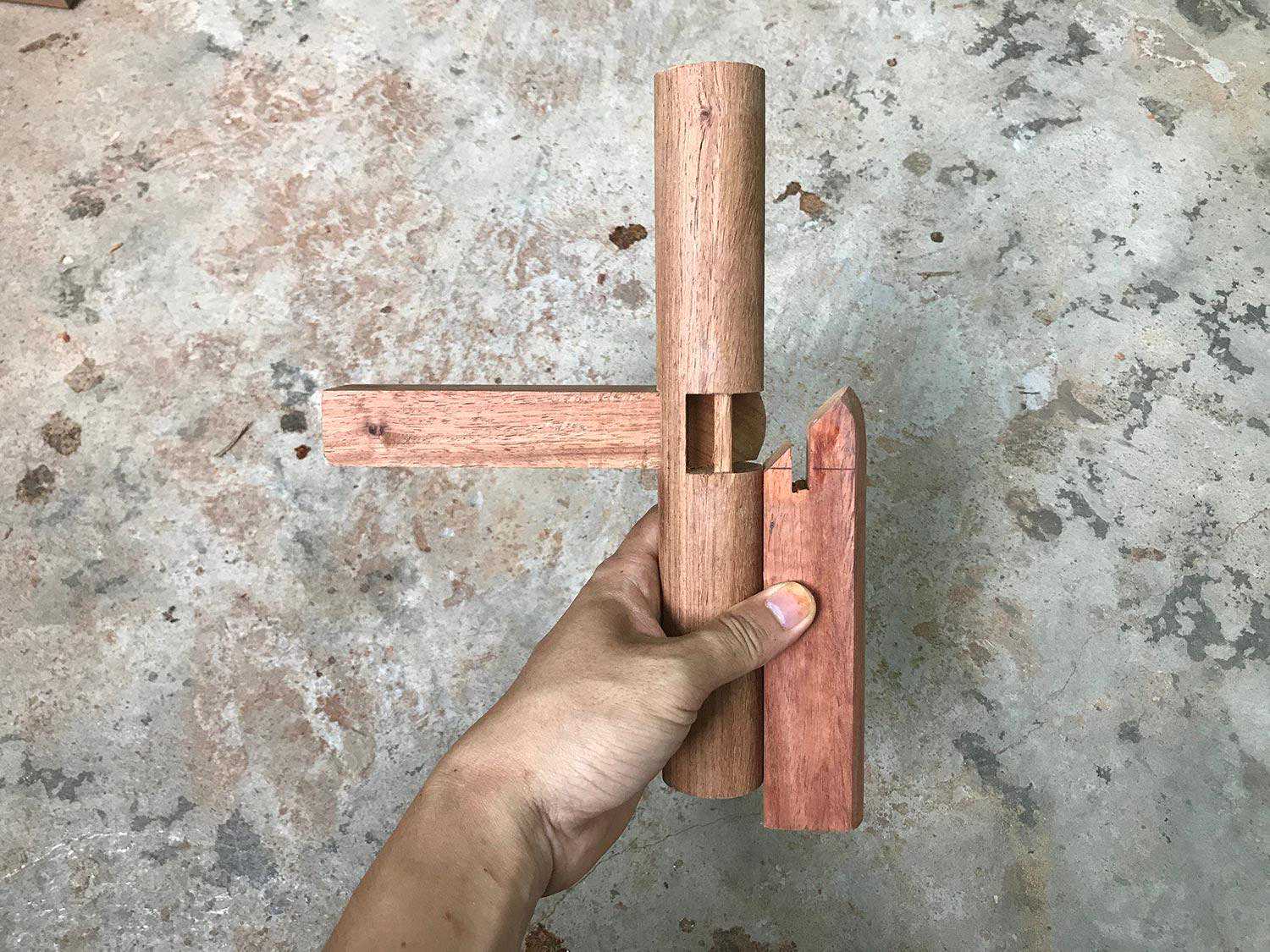 在利用这种结构做椅子时,座面和腿的接合处、椅腿的方形截面尽量做大,这样椅子会更牢固。