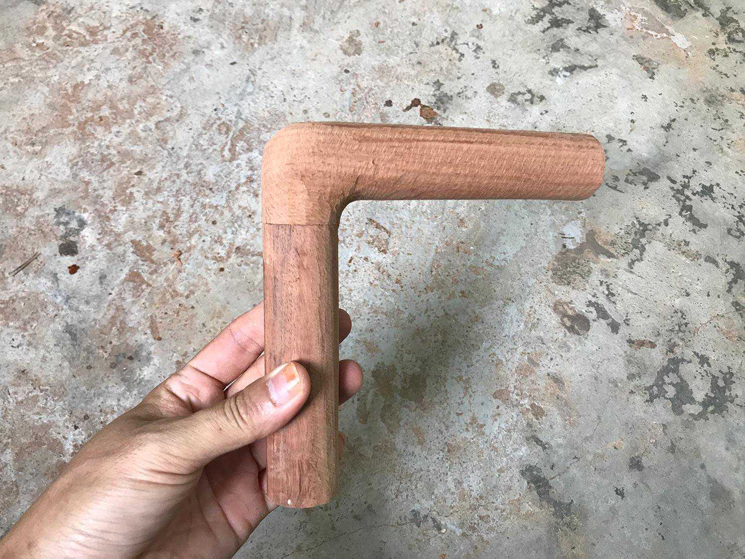 制作烟袋锅榫可以理解为正方形的方材直肩丁字接合,然后倒圆而成。